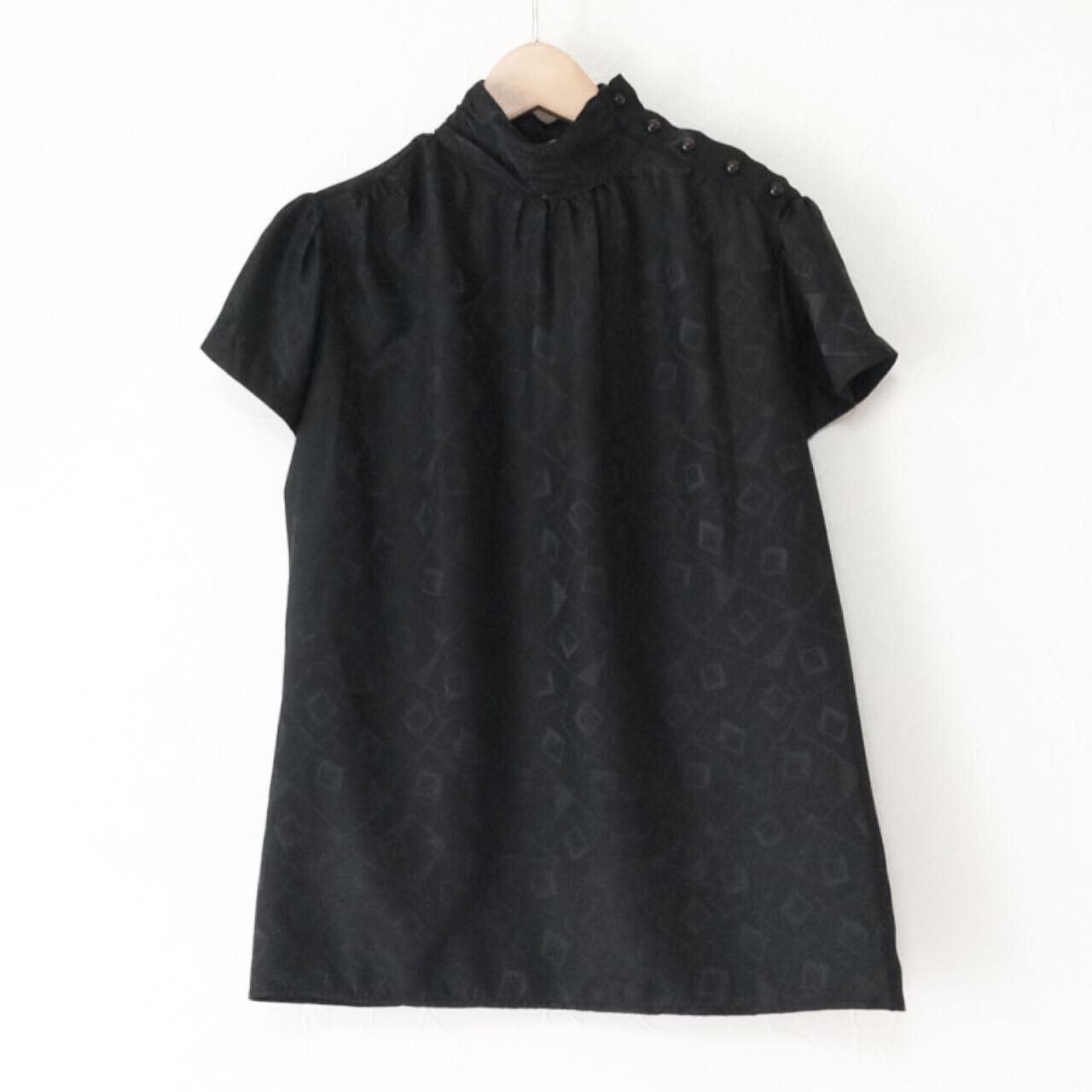 アメリカ製 黒に黒で模様の入ったビンテージブラウスになります。