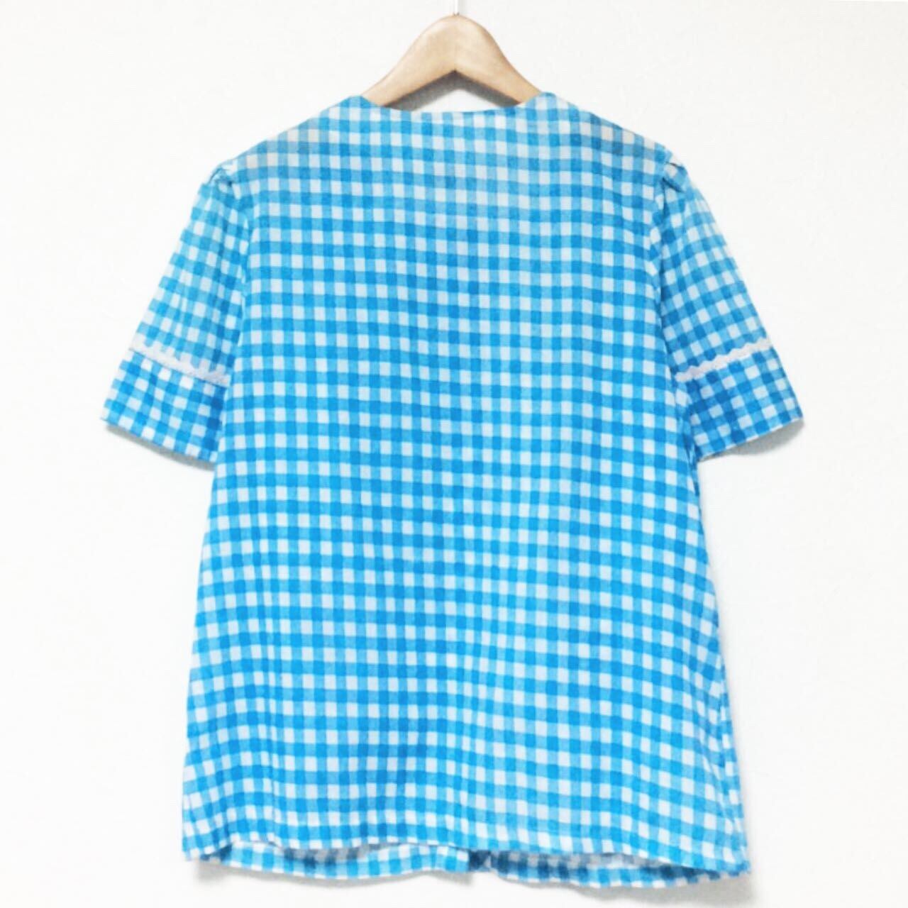 ヨーロッパ製 ギンガムチェックのビンテージブラウスになります。