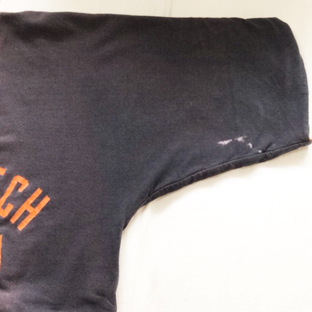 黒側の前身頃に色飛びと穴、脇の漂白飛び