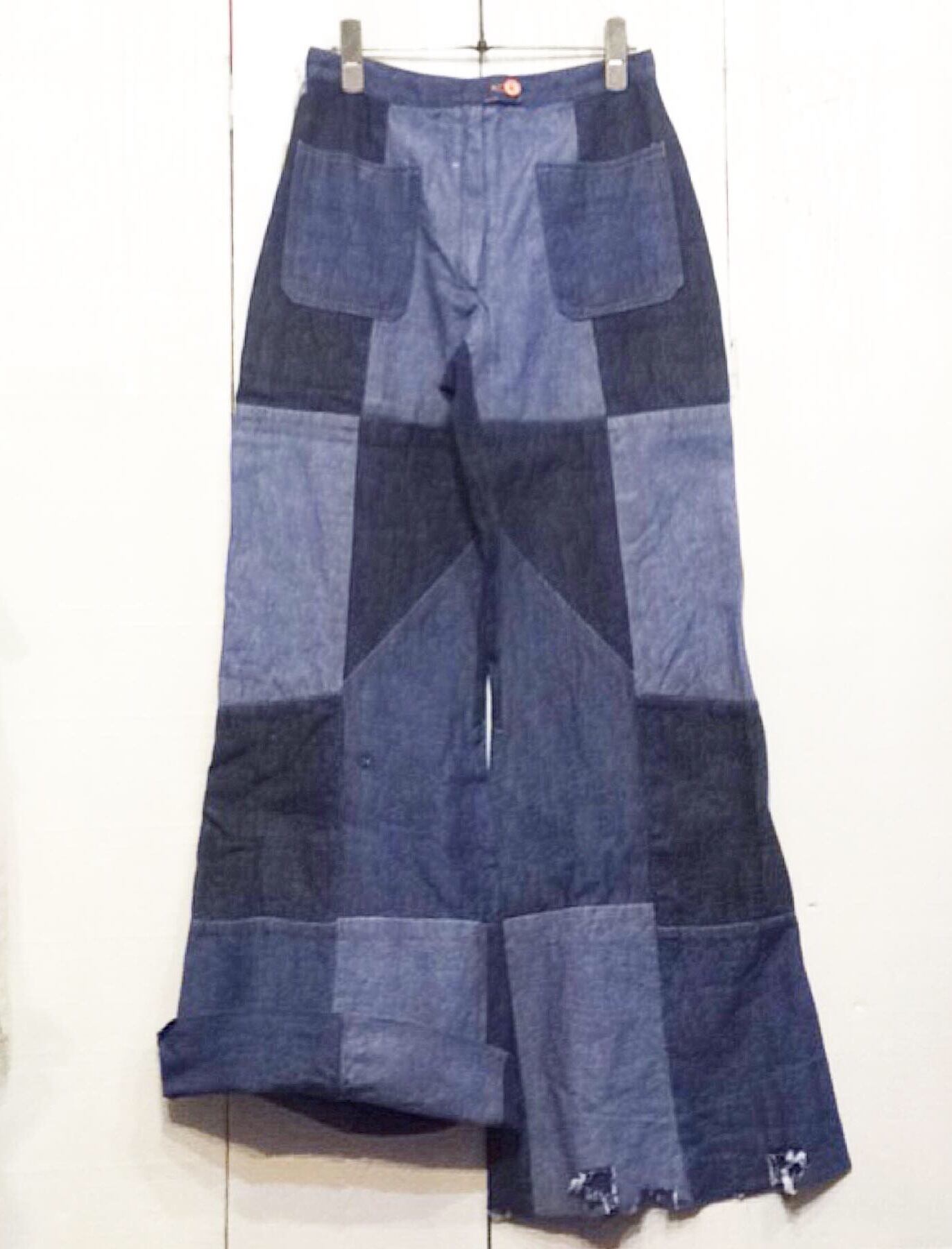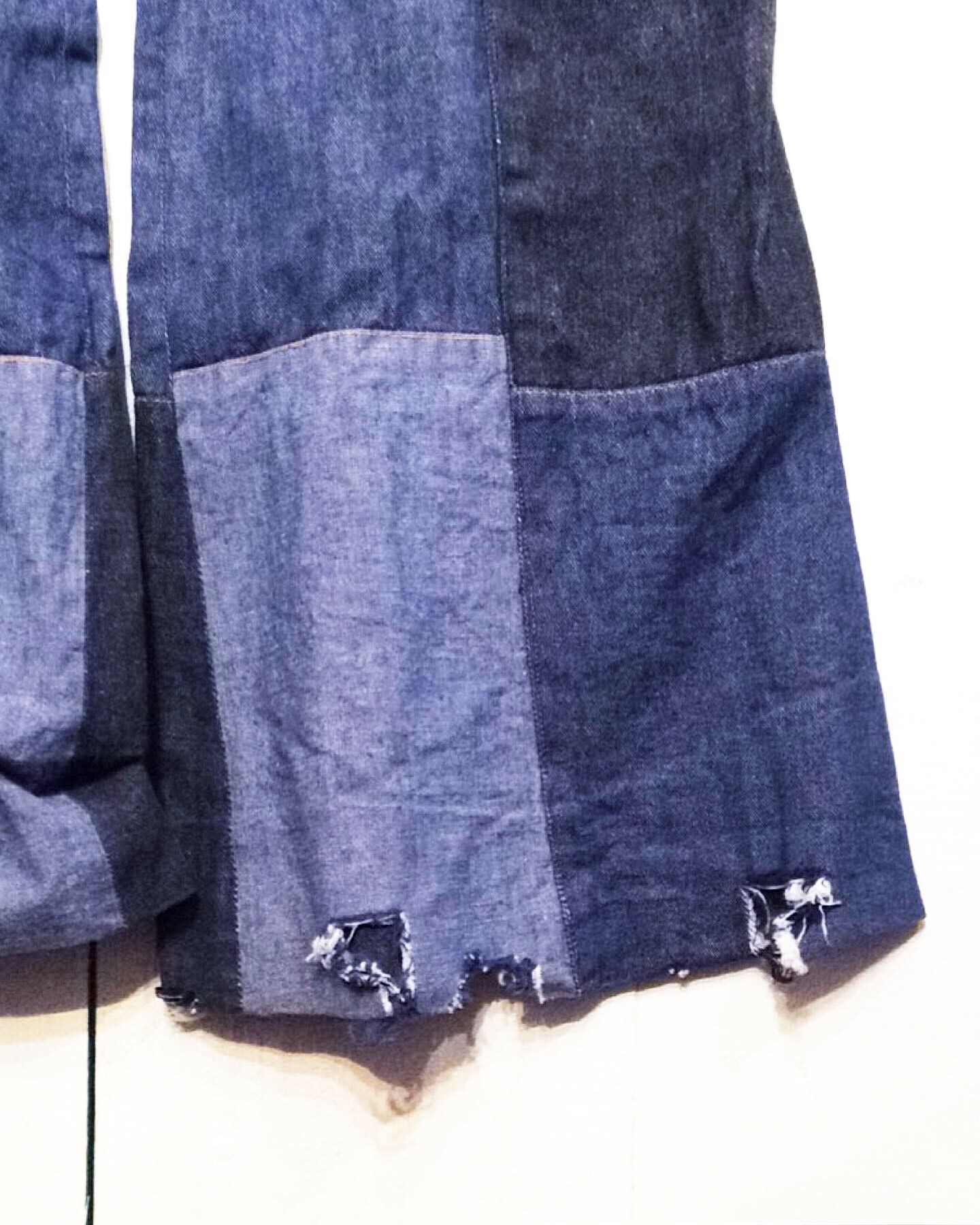 薄手のデニムを繋ぎ合わせたパッチワークで