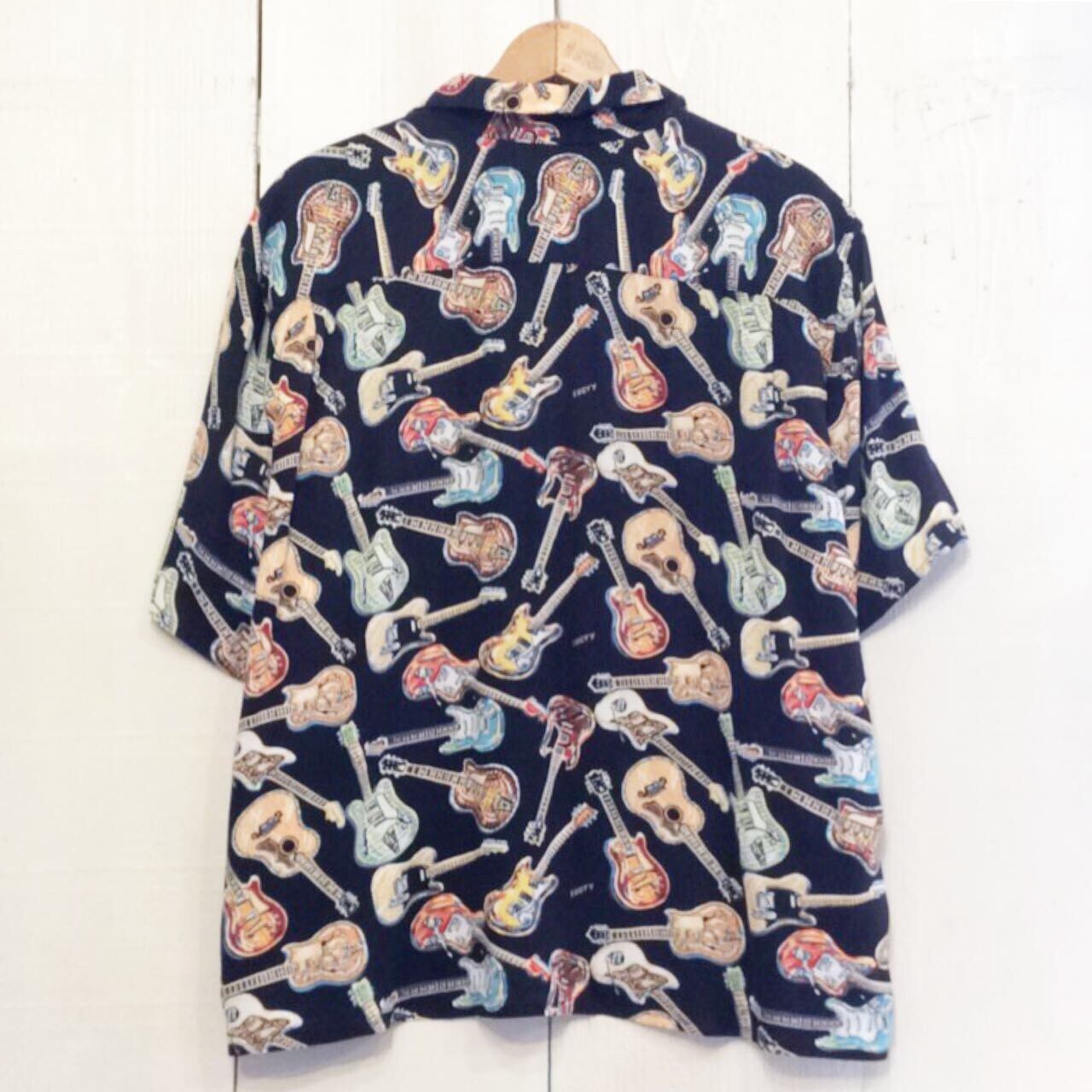 全てがギター柄だけの 珍しいタイプのハワイアンシャツです。