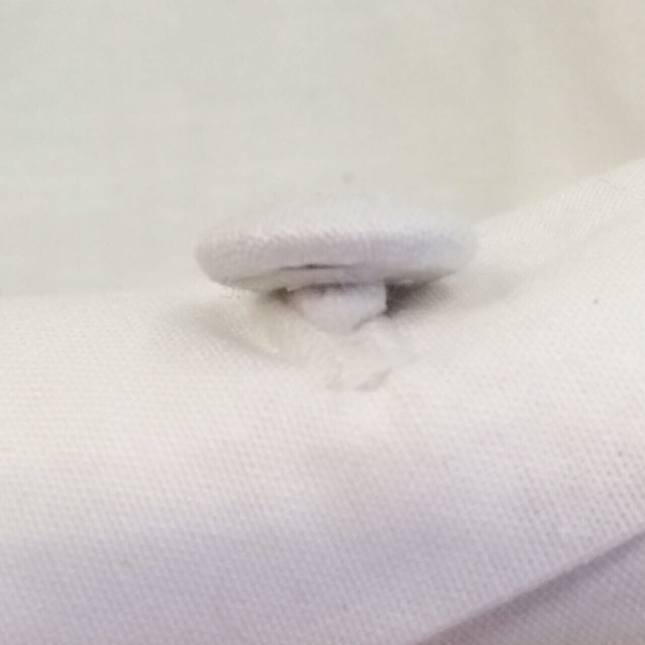 ボタンは中の布に縫い付けるタイプで包みボタン。