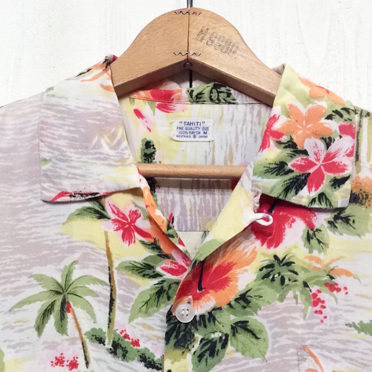 こちらは 日本からアメリカに渡り 帰国した ビンテージのレーヨンハワイアンシャツになります。