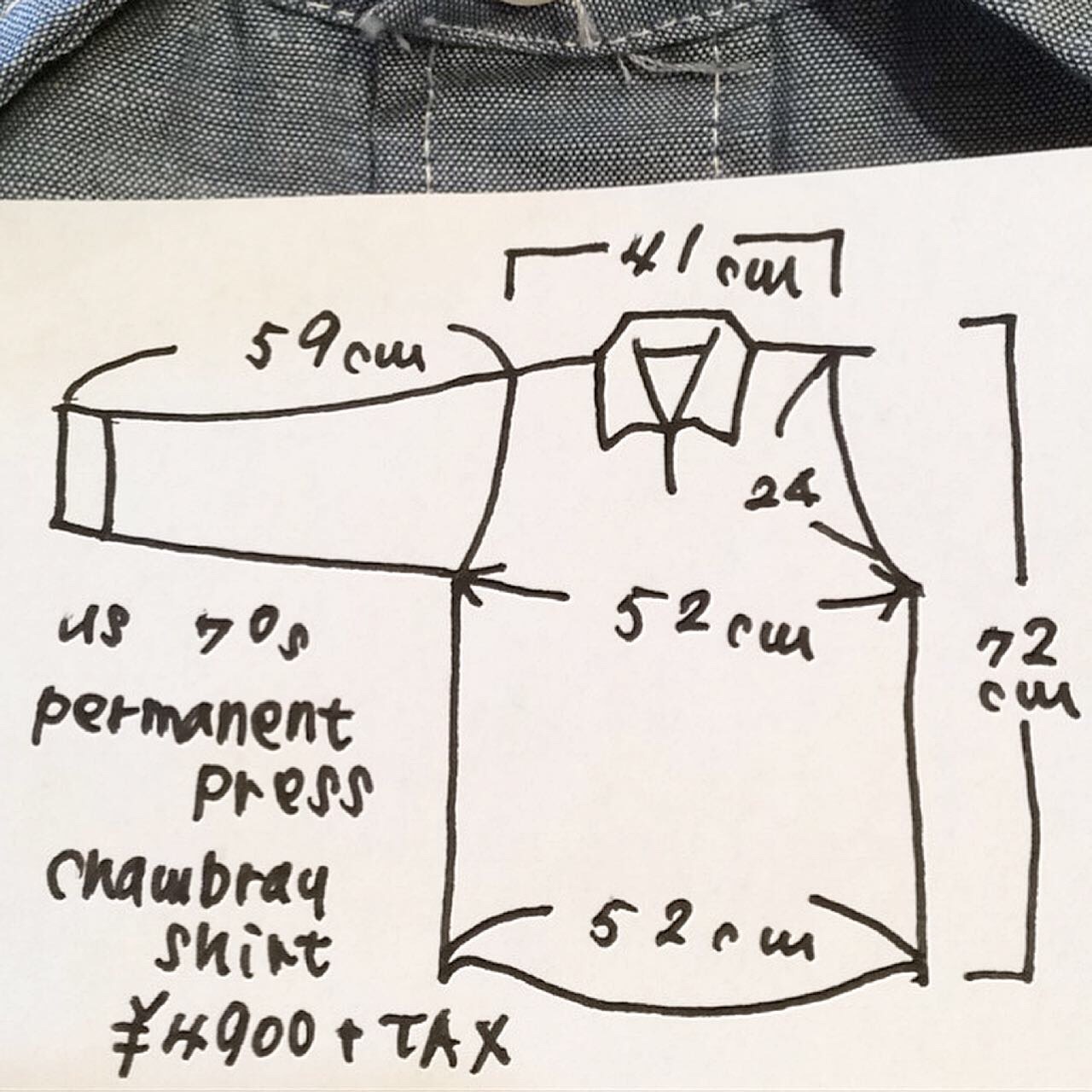 70年代 アメリカ permanent pressのシャンブレーシャツになります。