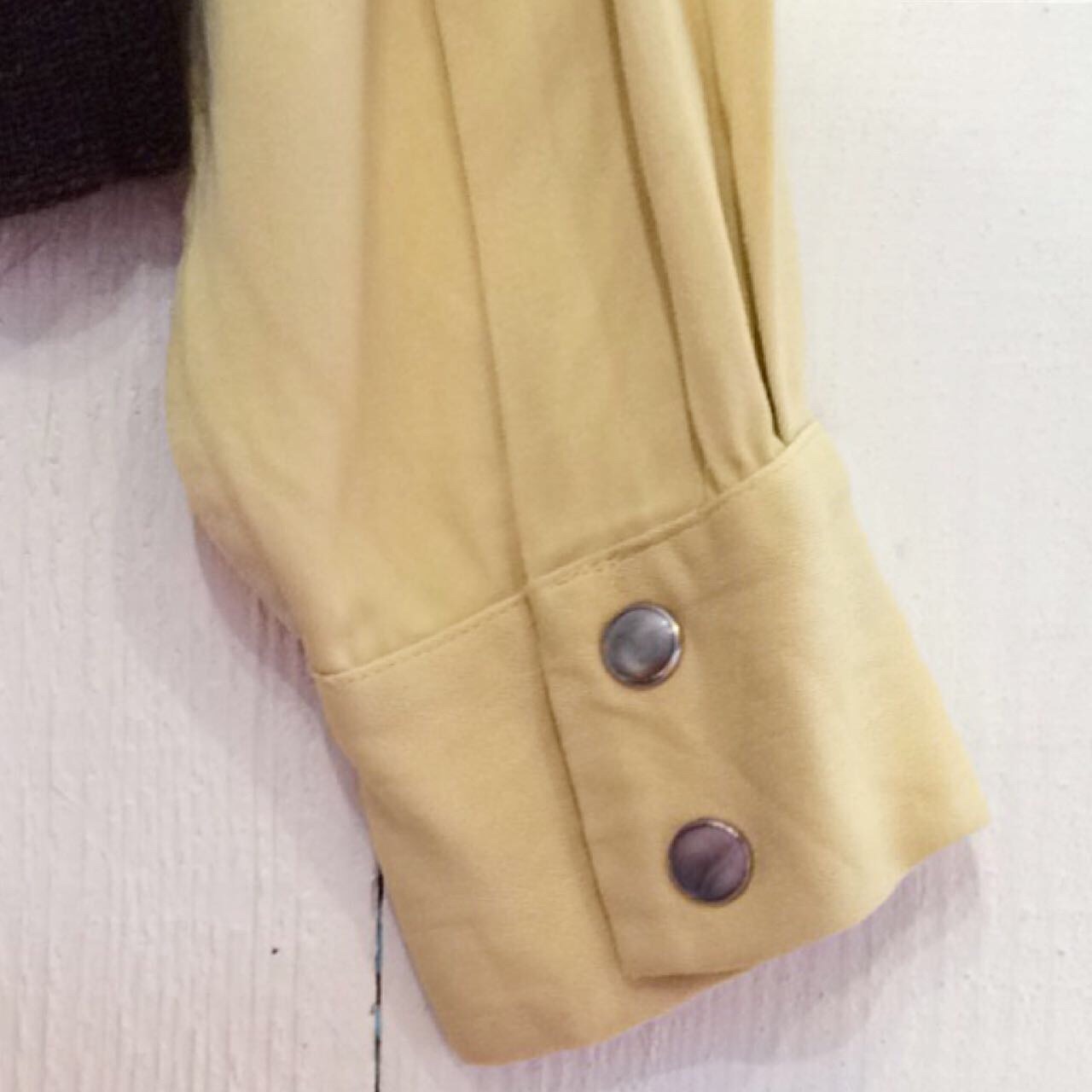 淡くて優しい黄色と茶色の、目の詰まったレーヨンキャバジン生地。
