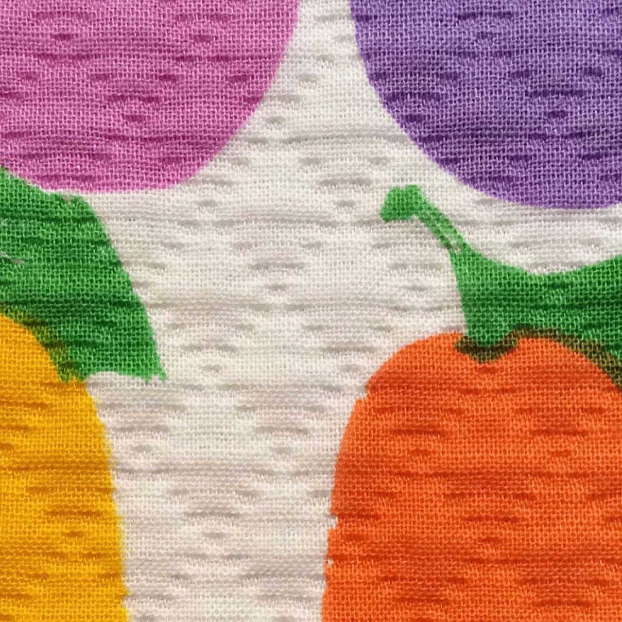 ぽってりと実ったカラフルな洋梨の生地は コットン素材で、