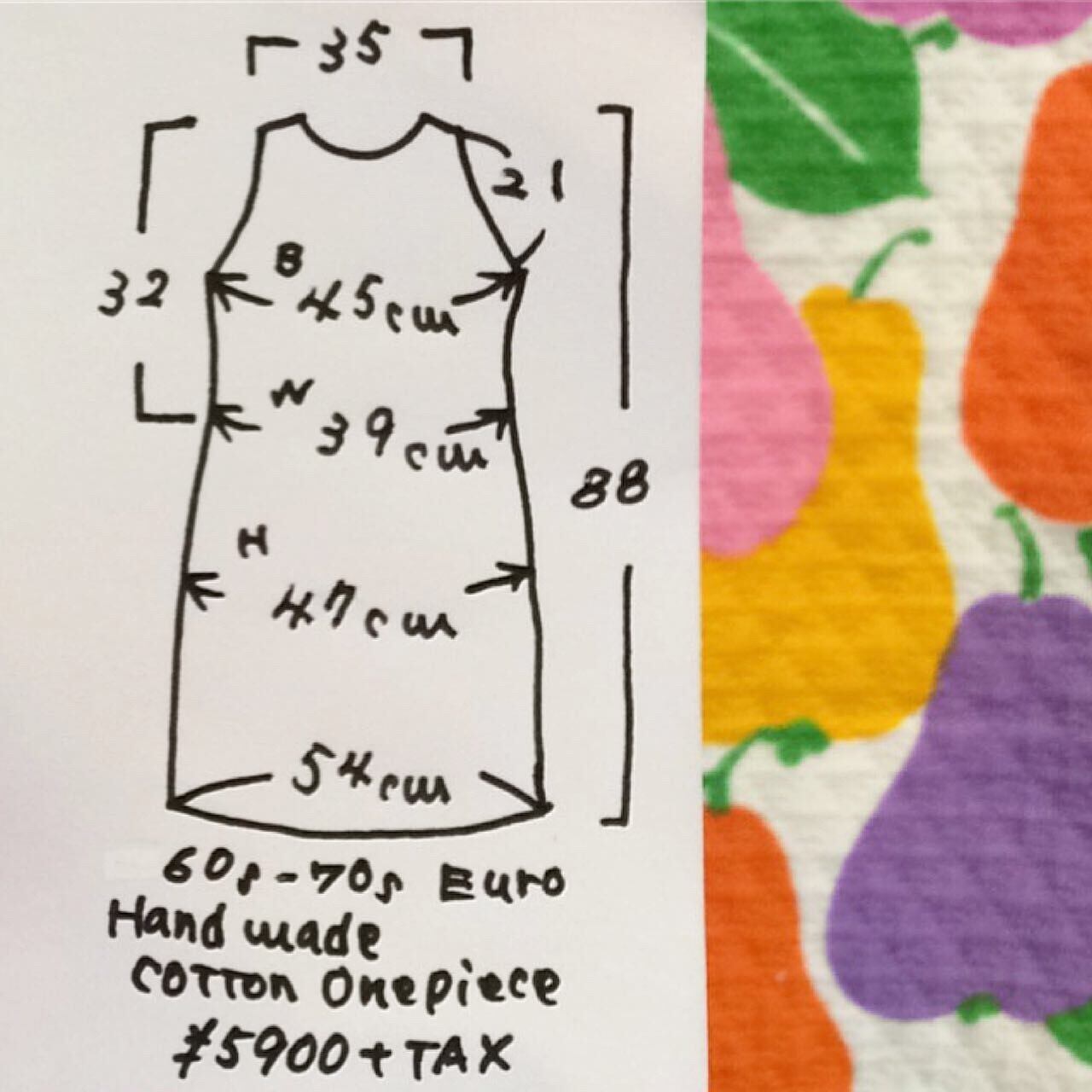 60-70年代の ヨーロッパ製の 洋梨柄のワンピースになります。