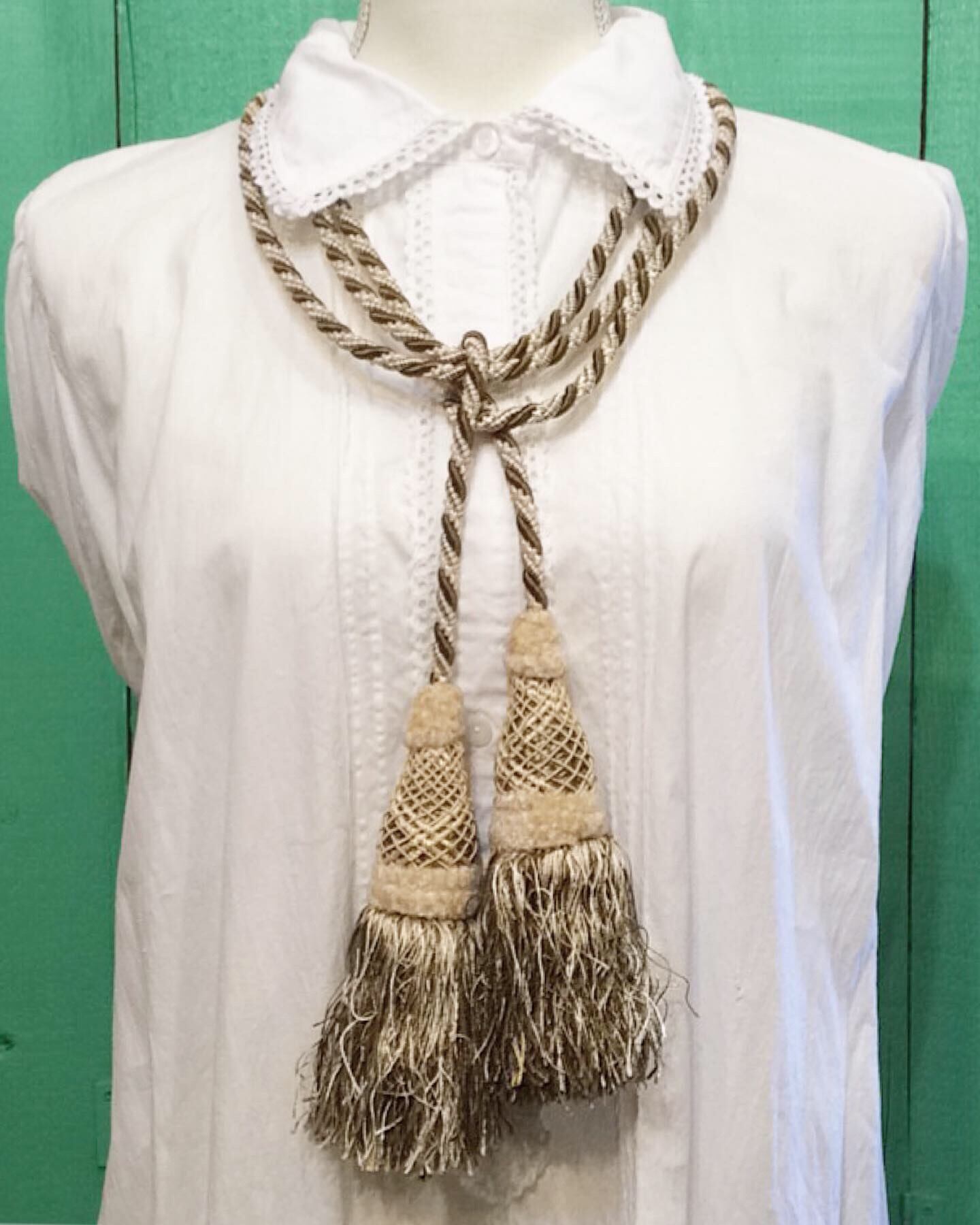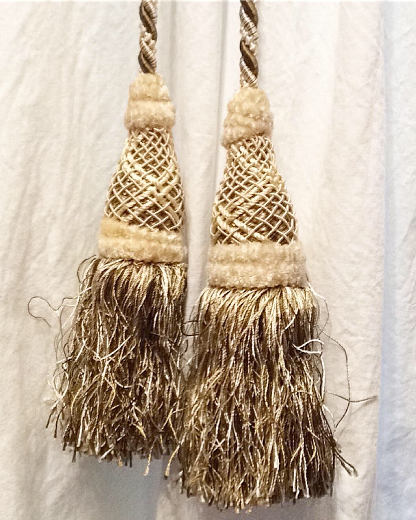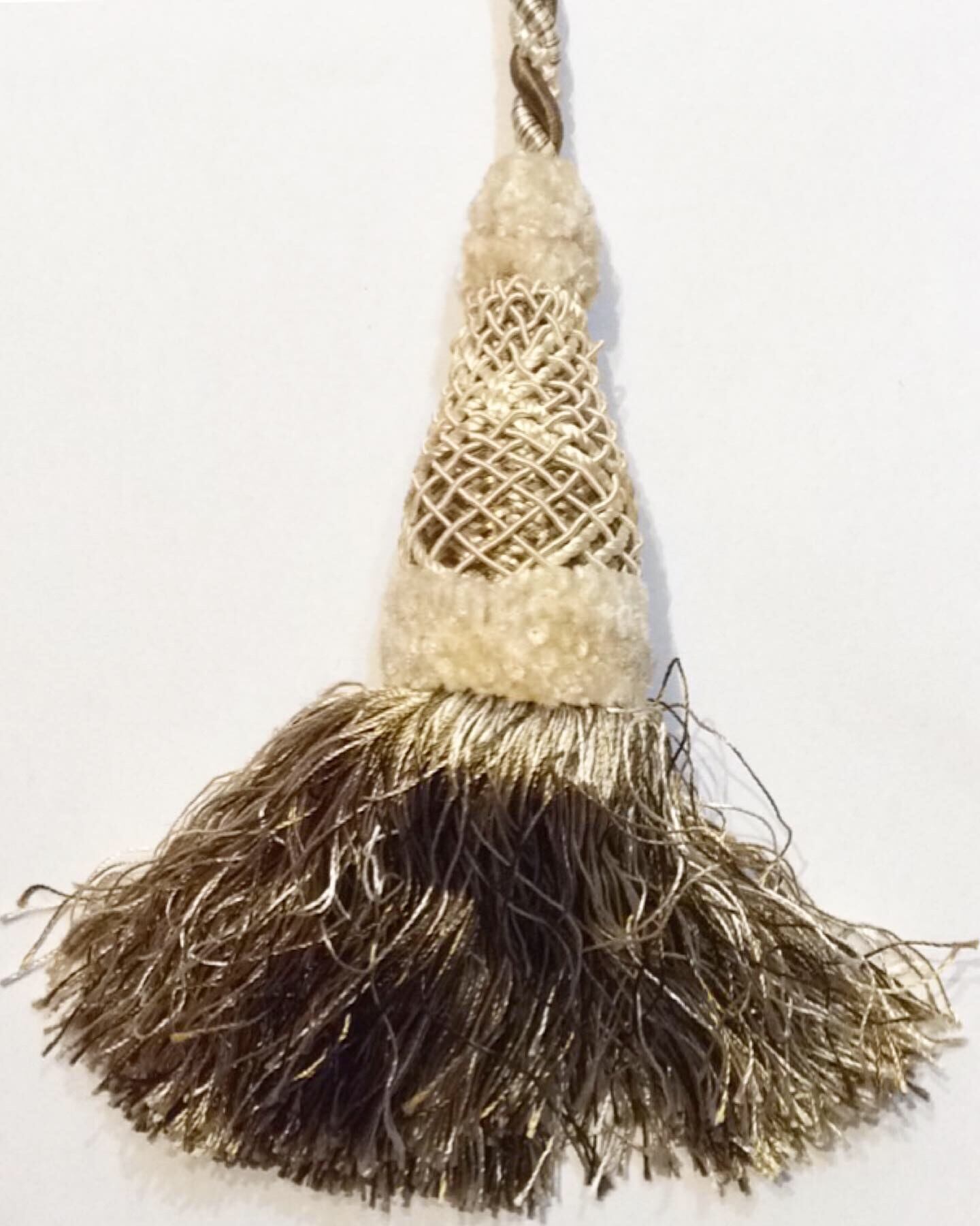 ベージュ、茶色、焦げ茶色の シルク糸の様な素材で出来ています。