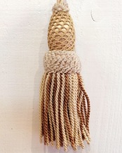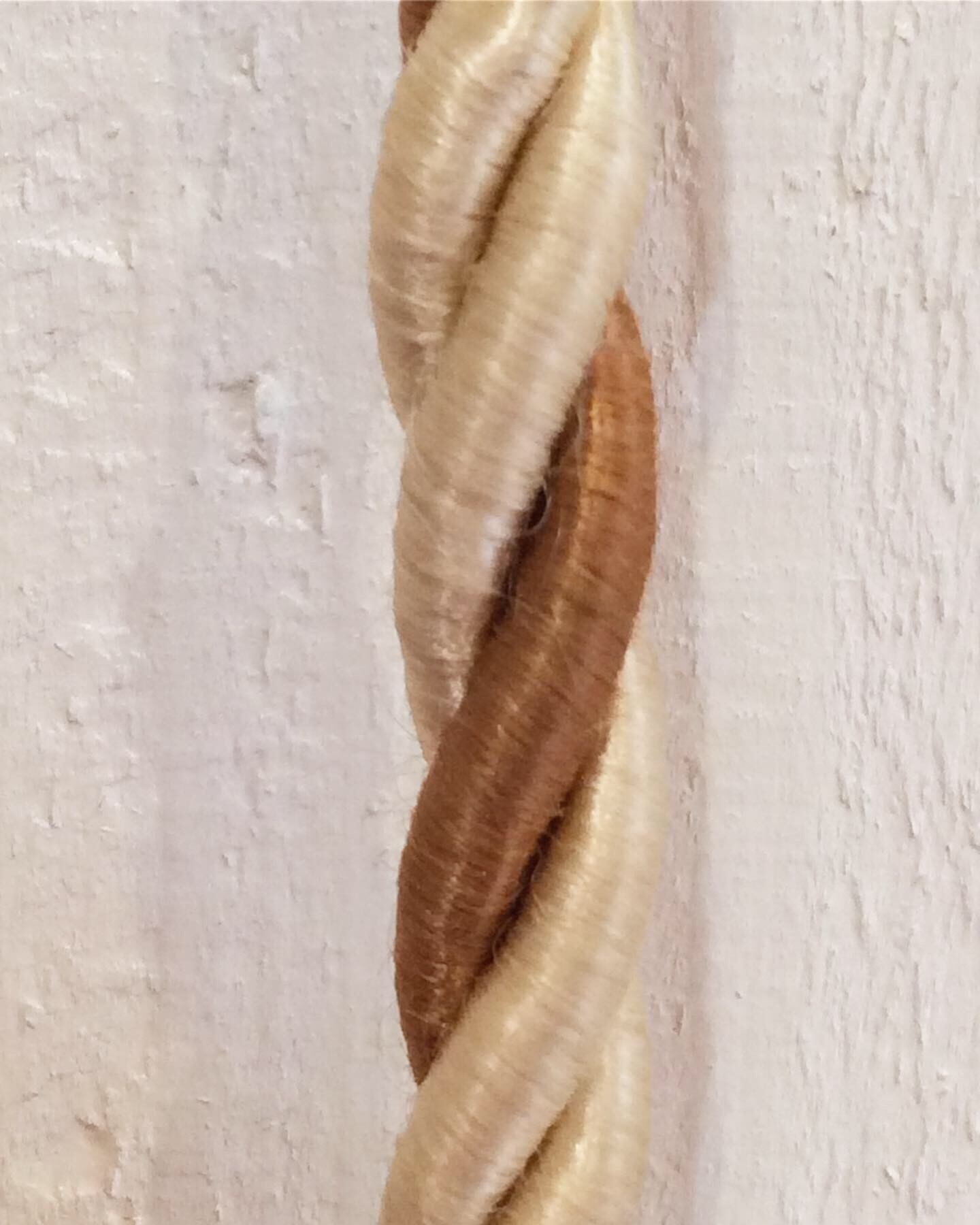 ベージュと茶色の 艶のあるシルク糸の様な素材で出来ています。
