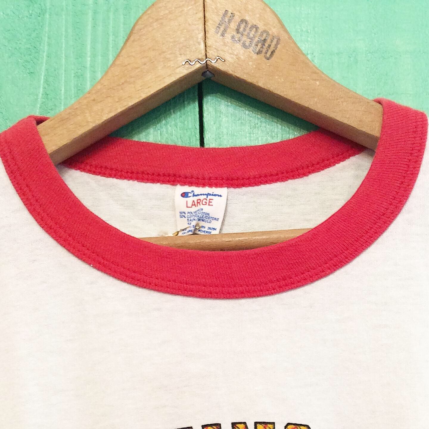 アメリカ製 80年代のチャンピオンの リンガーTシャツになります。