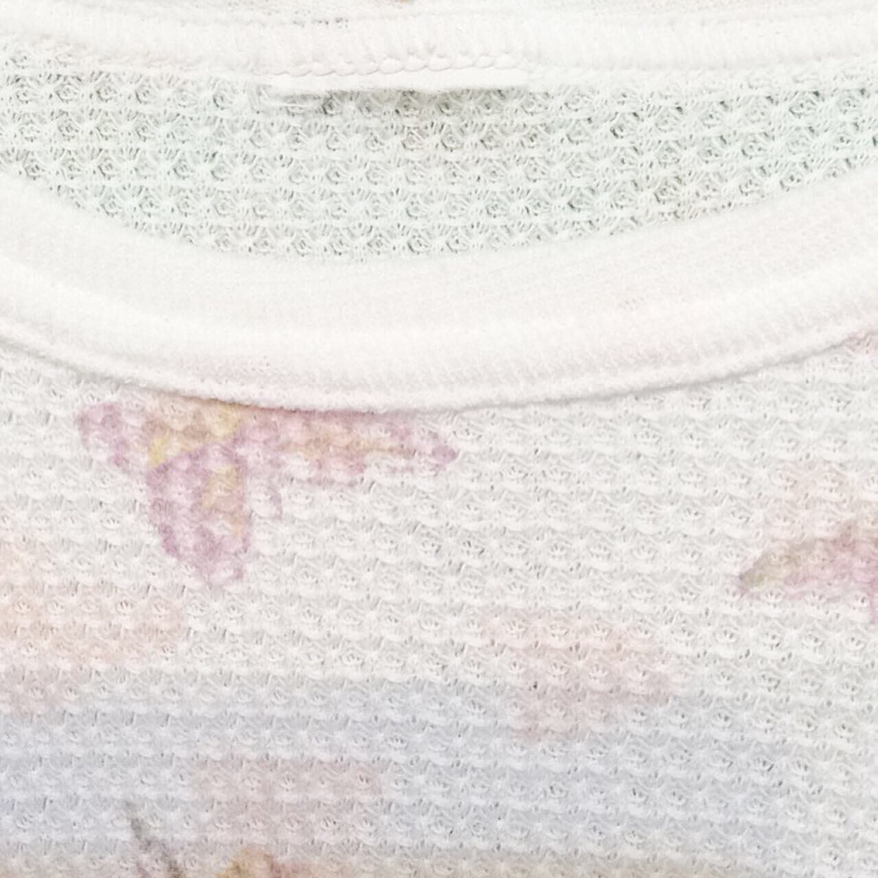 色は 白地に薄い紫、薄いカーキ、ピンク、薄いマスタード色 の染み込みプリントになります。