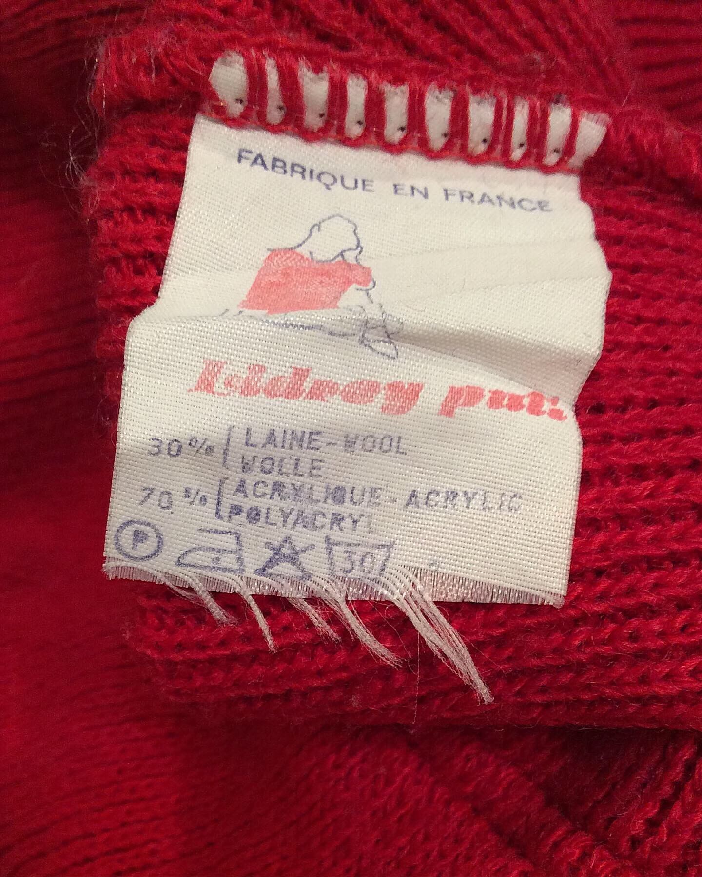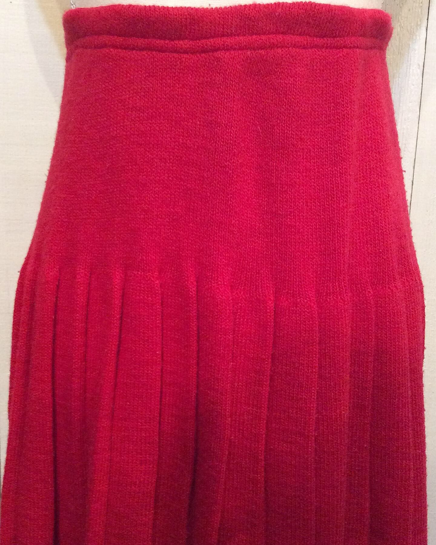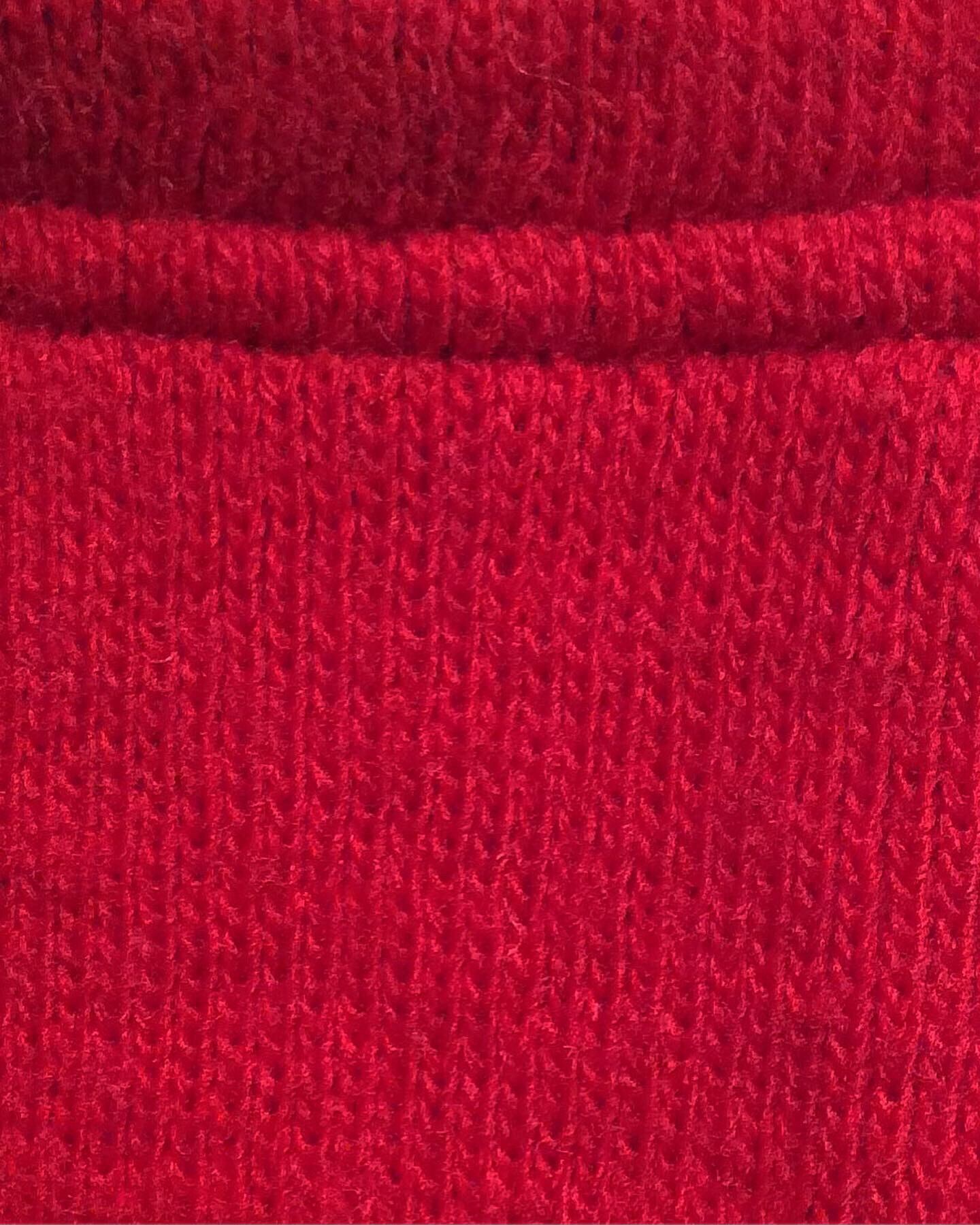 素材は赤の ウール30% アクリル70%で 透けない中厚ニットです。