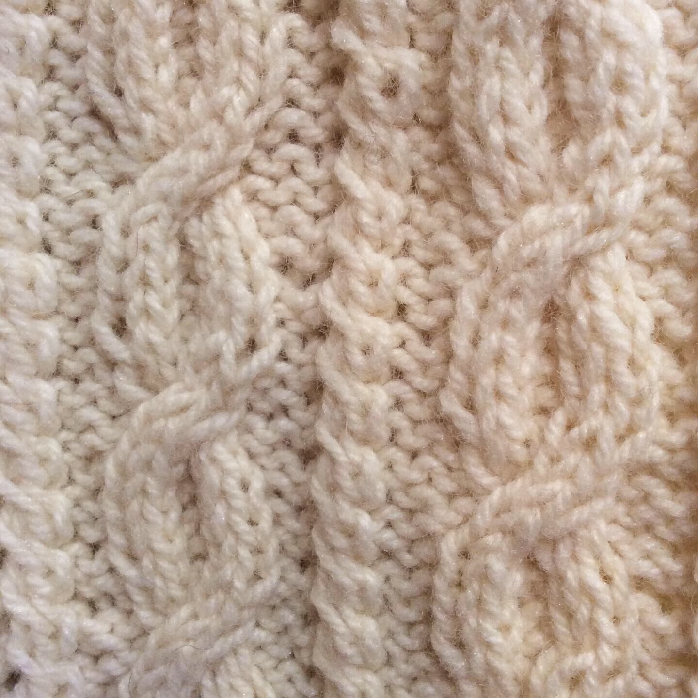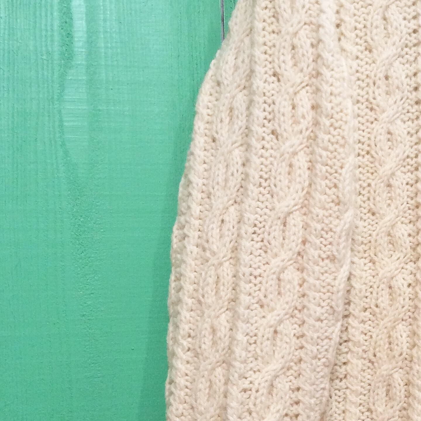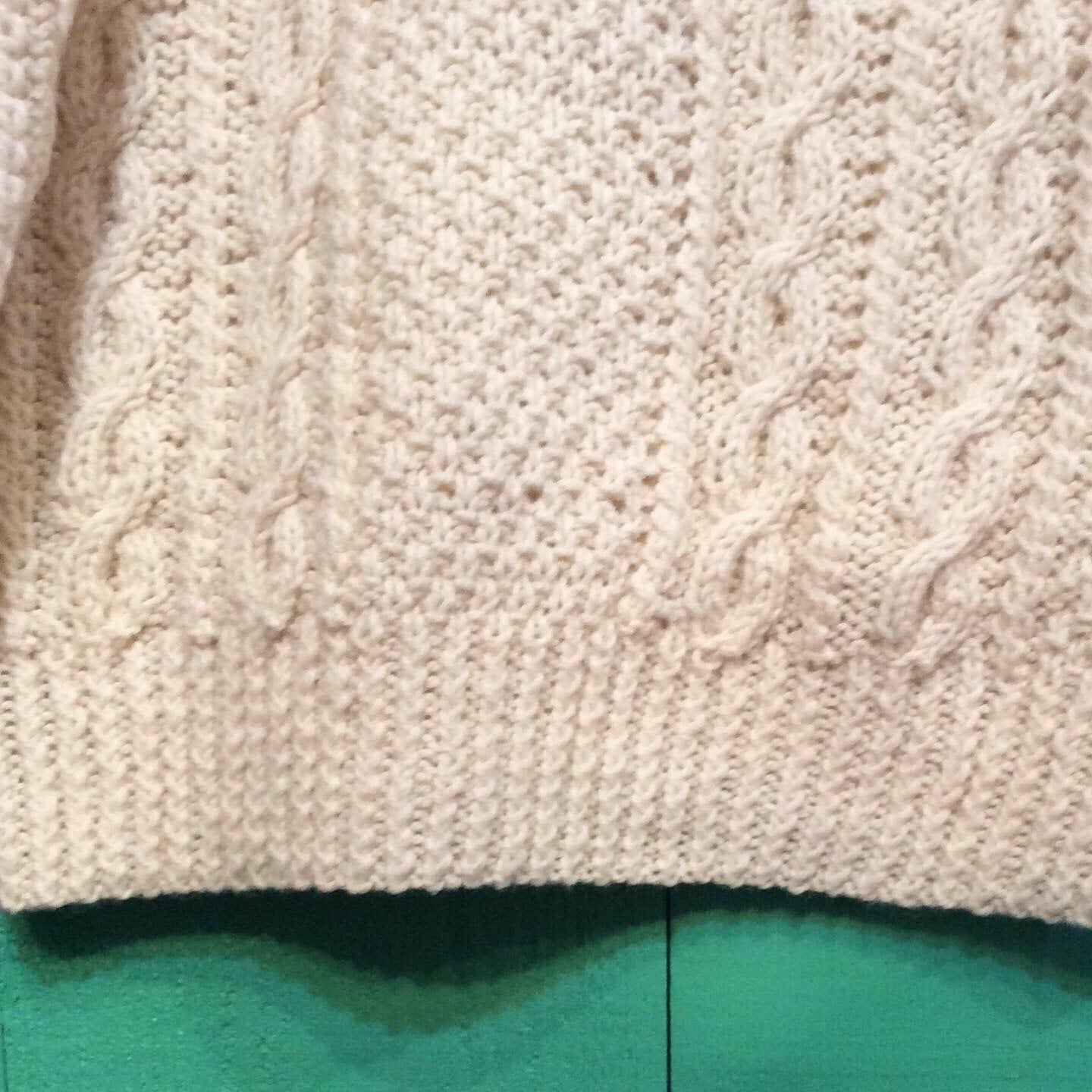 一般的な フィッシャーマンセーターより少し細めの毛糸で編まれていて、
