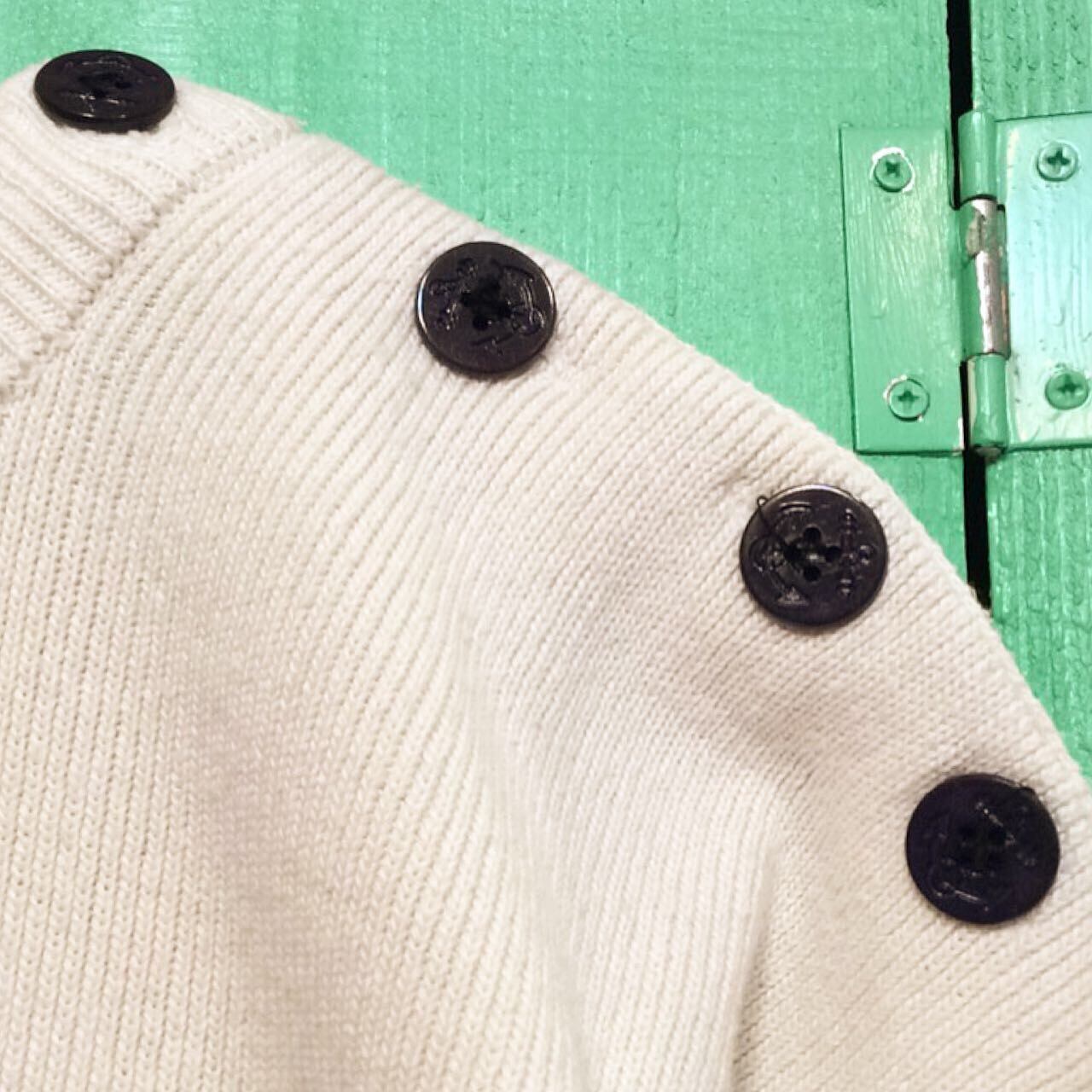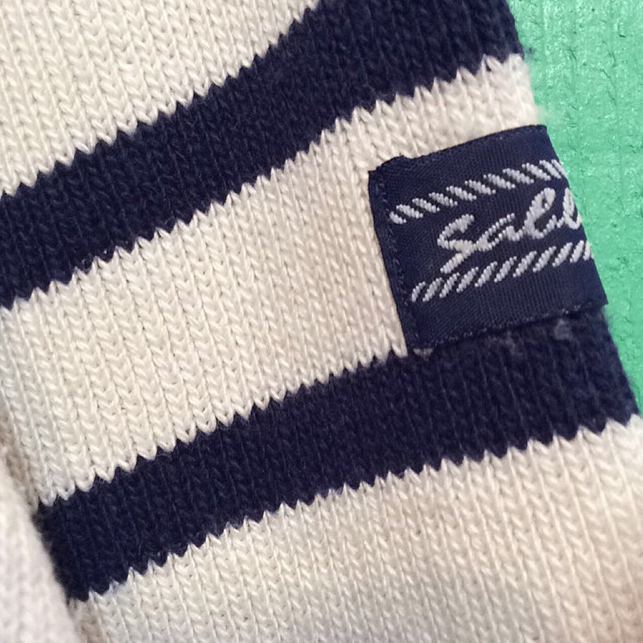 色は オフホワイトよりの生成り色に濃い紺色です。