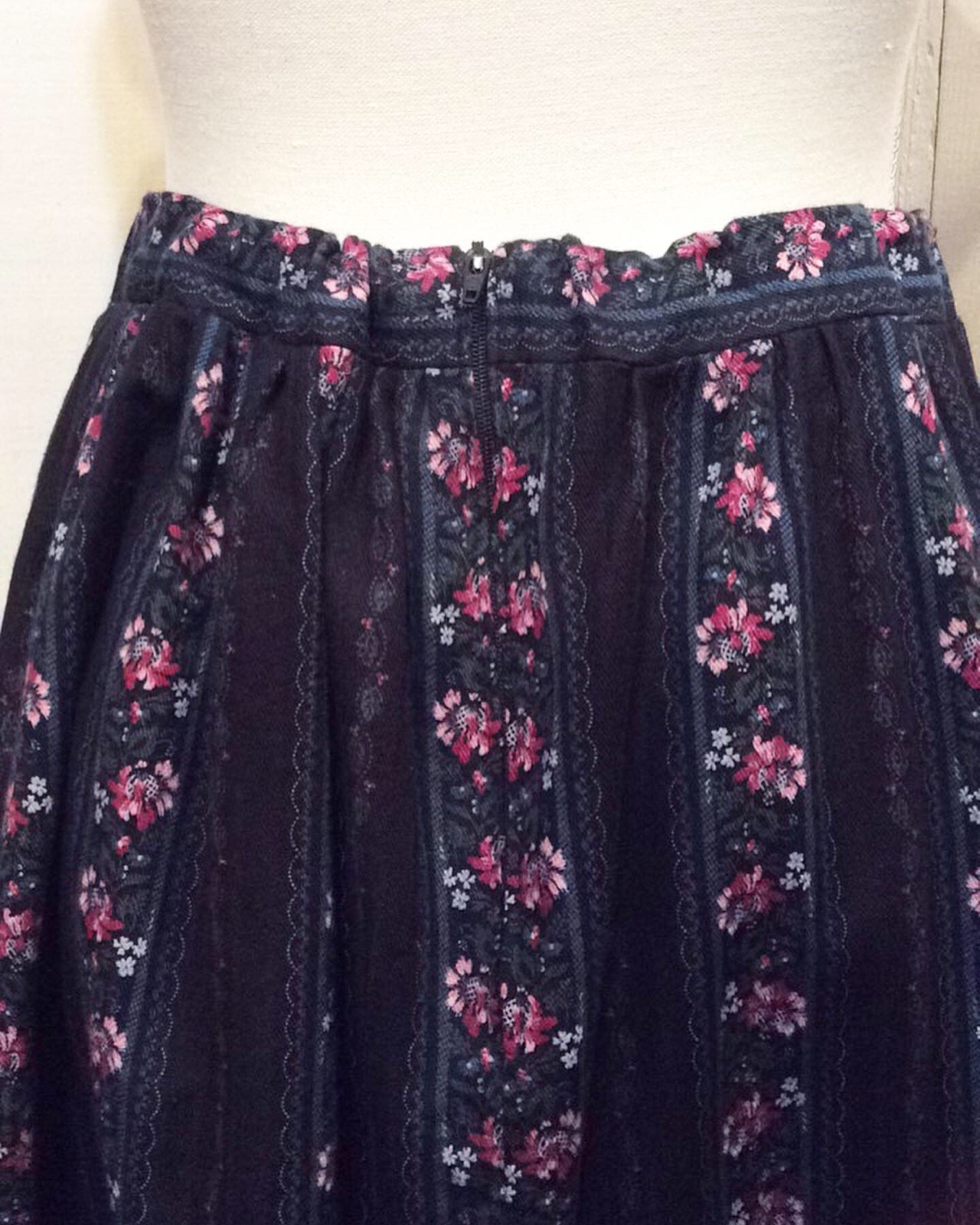 あまり広がり過ぎないデザインで、ウエストは後ろにファスナーが有りますが