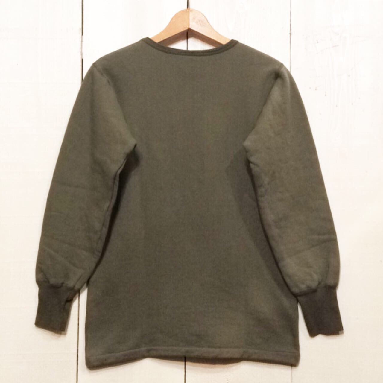 首と袖口のリブが濃いカーキ色なのがポイントです。