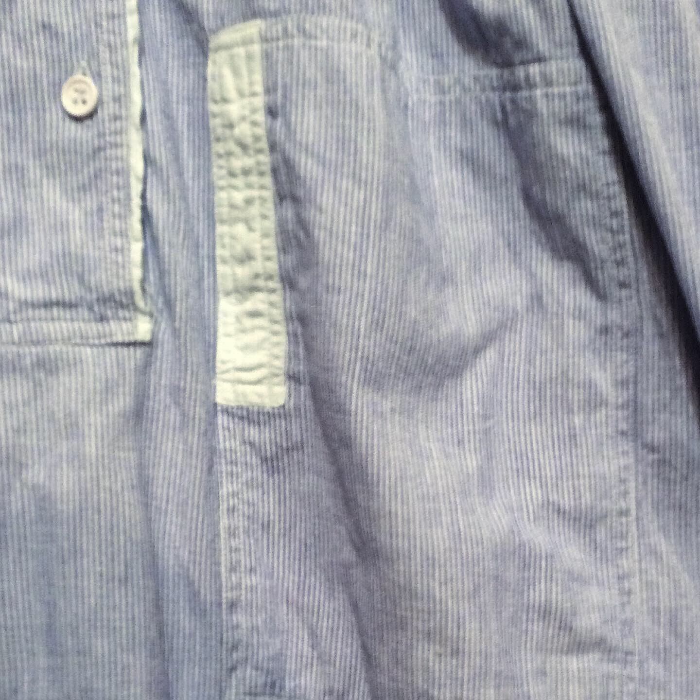 首回りと袖口とポケット口とパイピングとマチが白のコットンです。