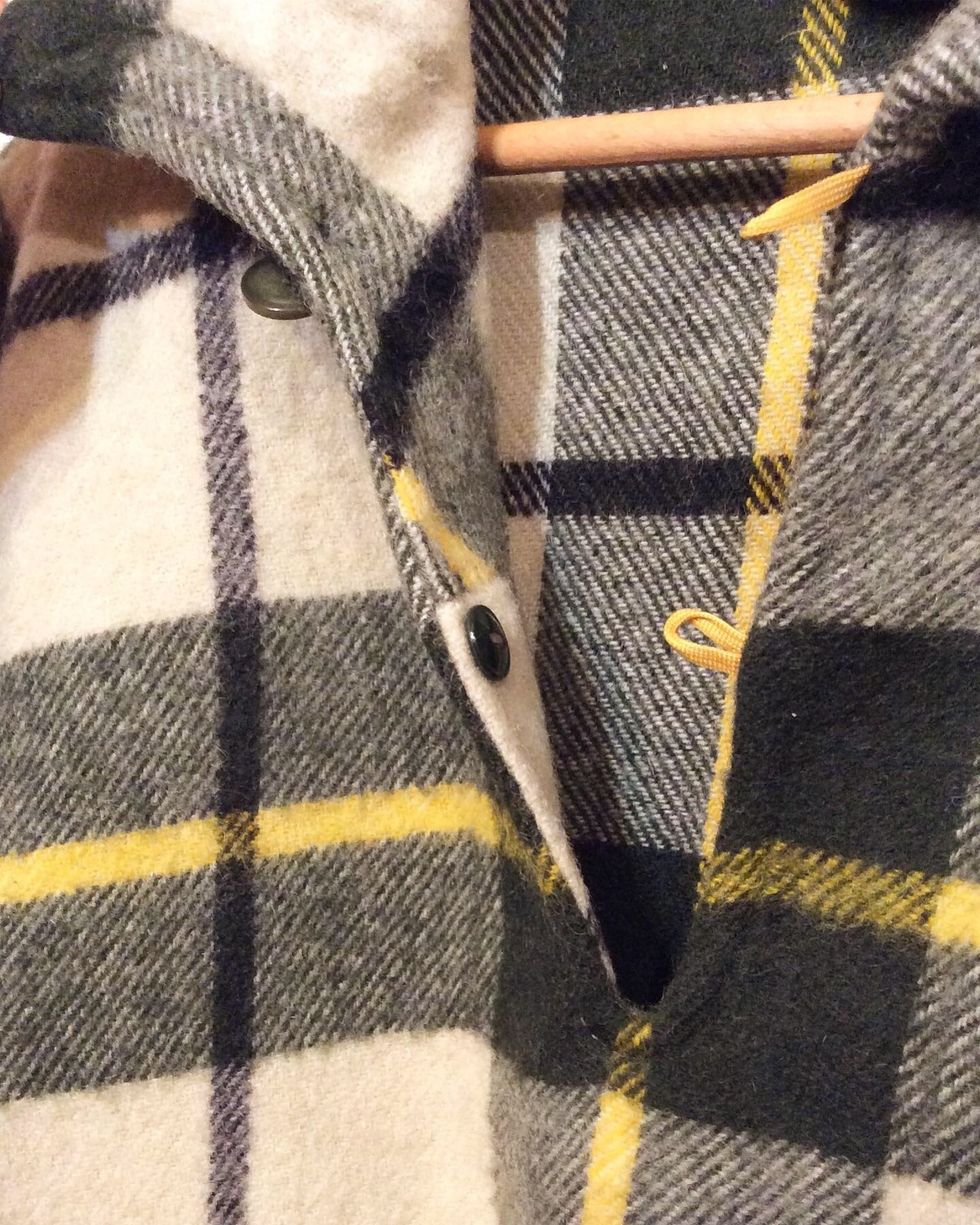 プルオーバータイプで第2ボタンが内側で留める様になっています。