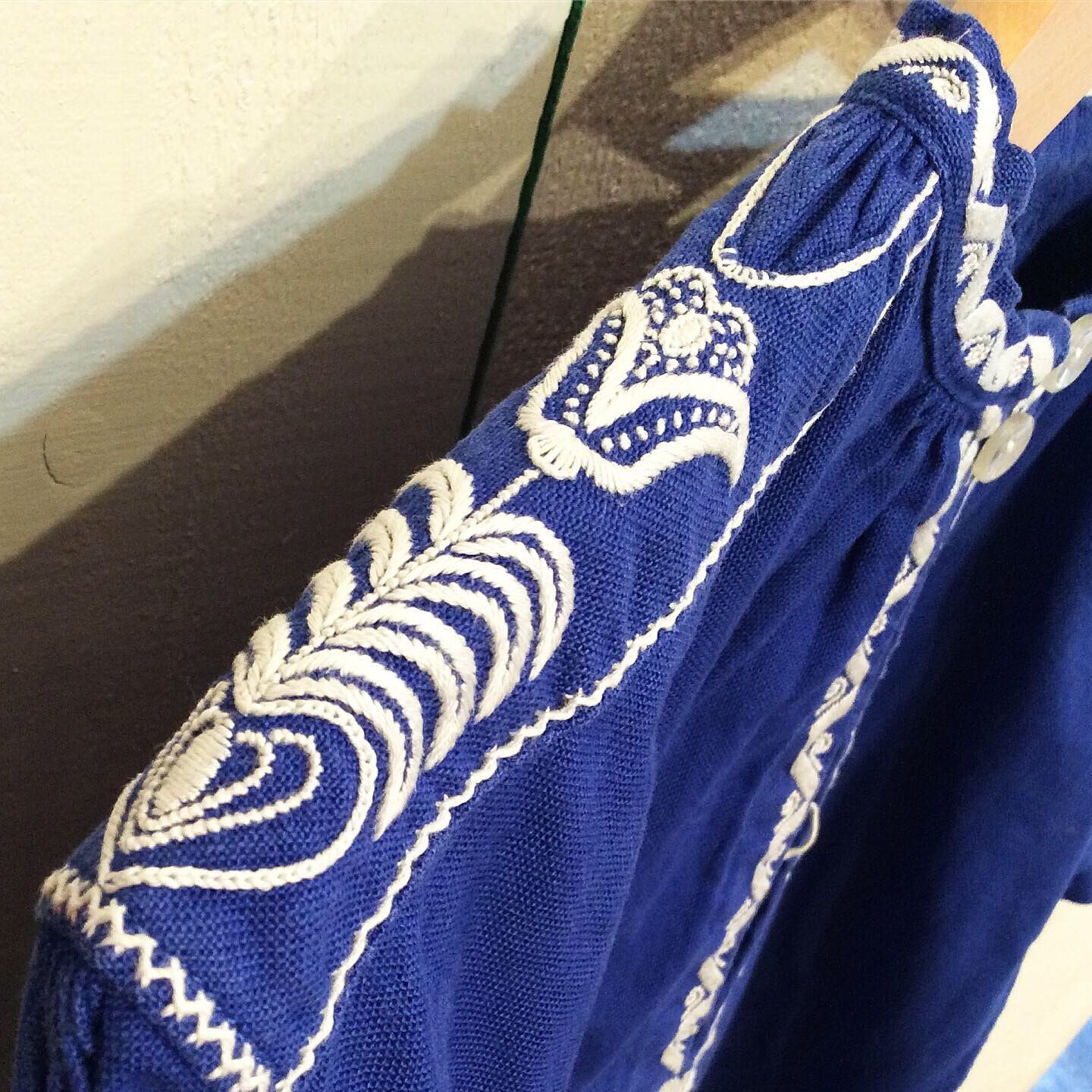 首回りや袖口のギャザーや 刺繍も全て手縫いです。