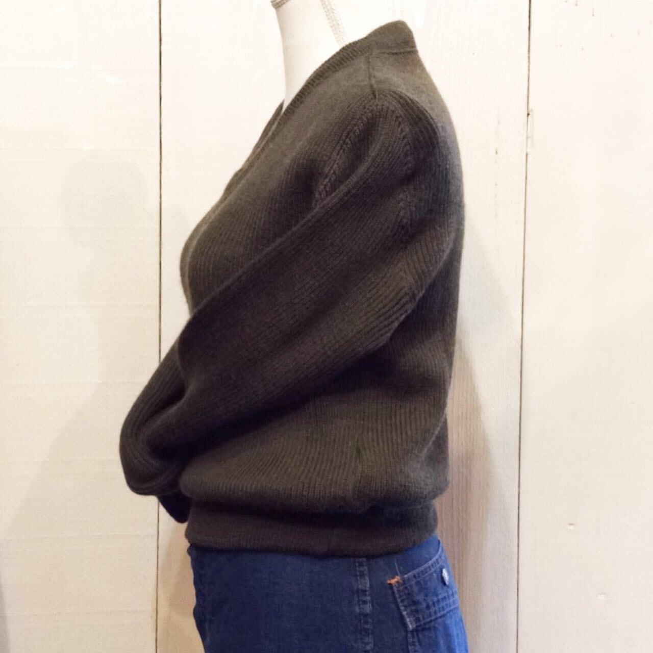 太めの幅のVネックが 何処かお洒落な雰囲気です。