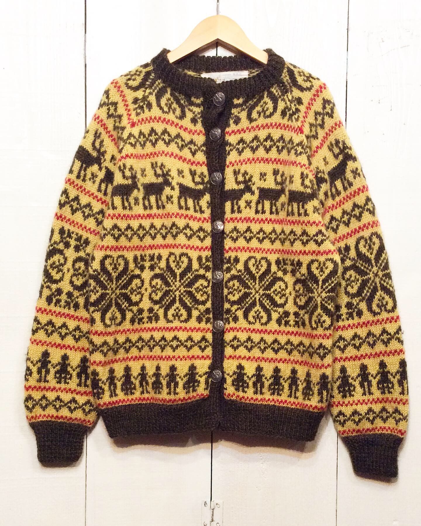 ノルウェー製 70年代頃の 手編みのノルディックカーディガンになります。
