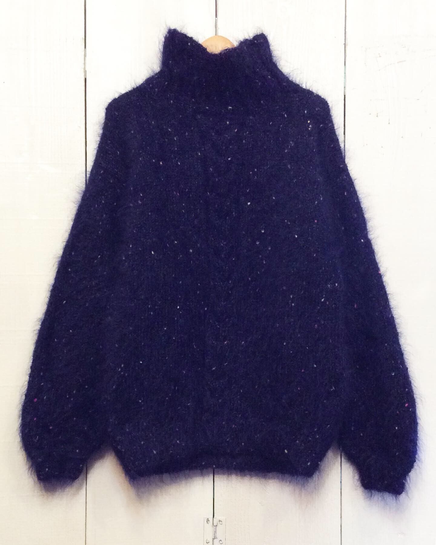 毛足の長いふかふかなモヘアで、ふんわりと編まれたタートルネックタイプのニットです。
