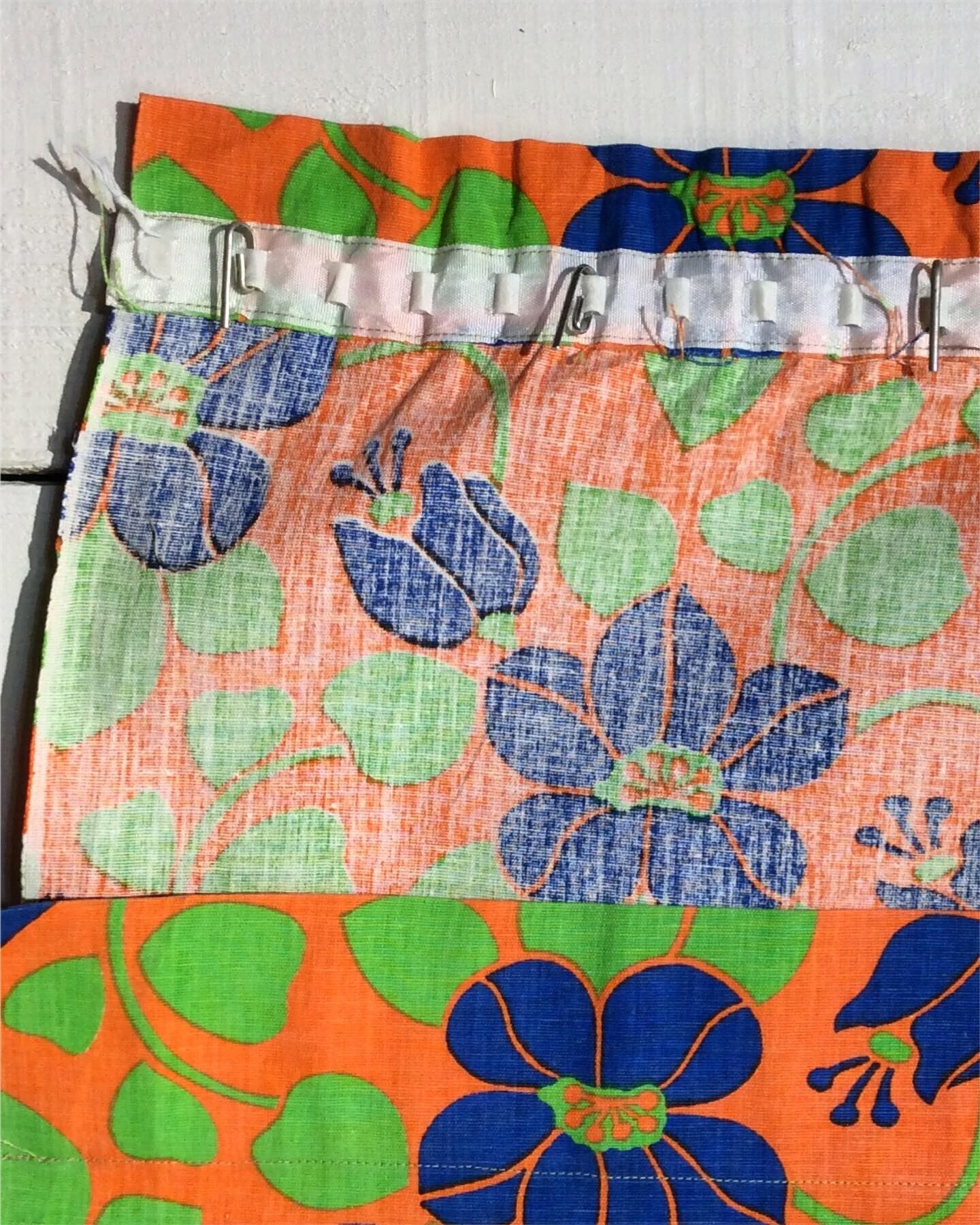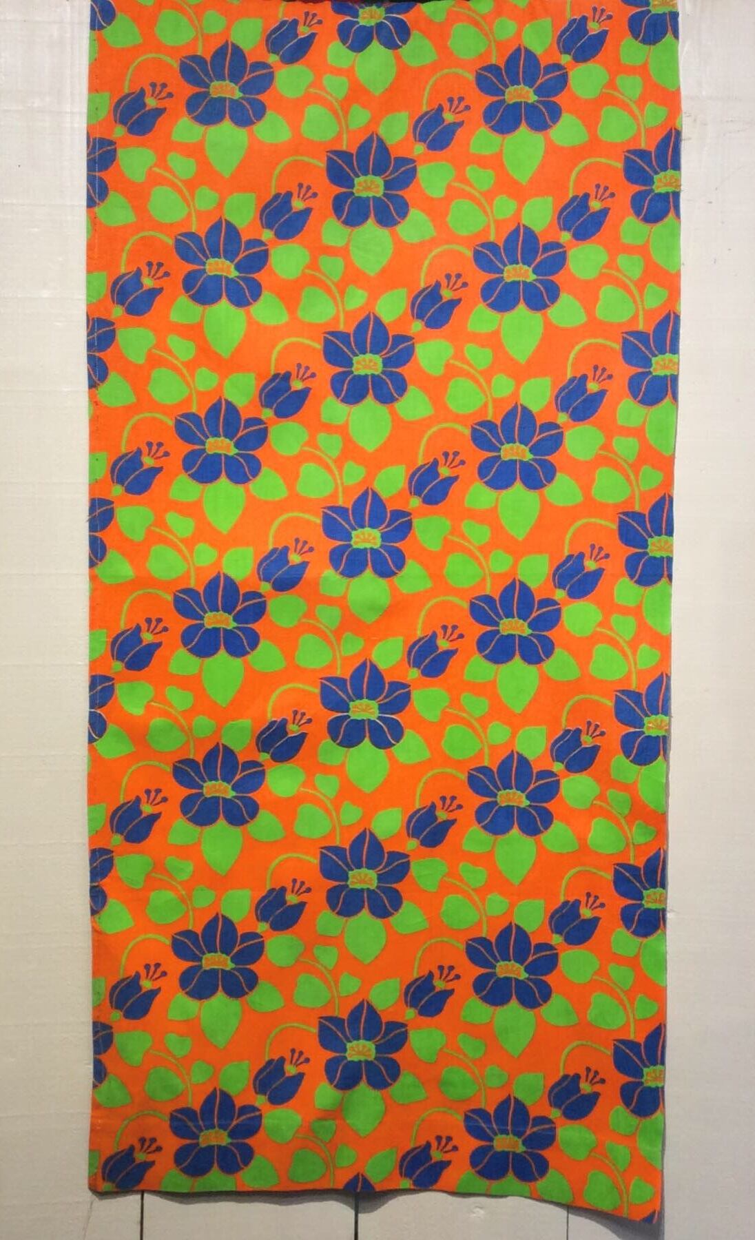 フラワープリントで、オレンジ・濃いめの青・きみどり色が