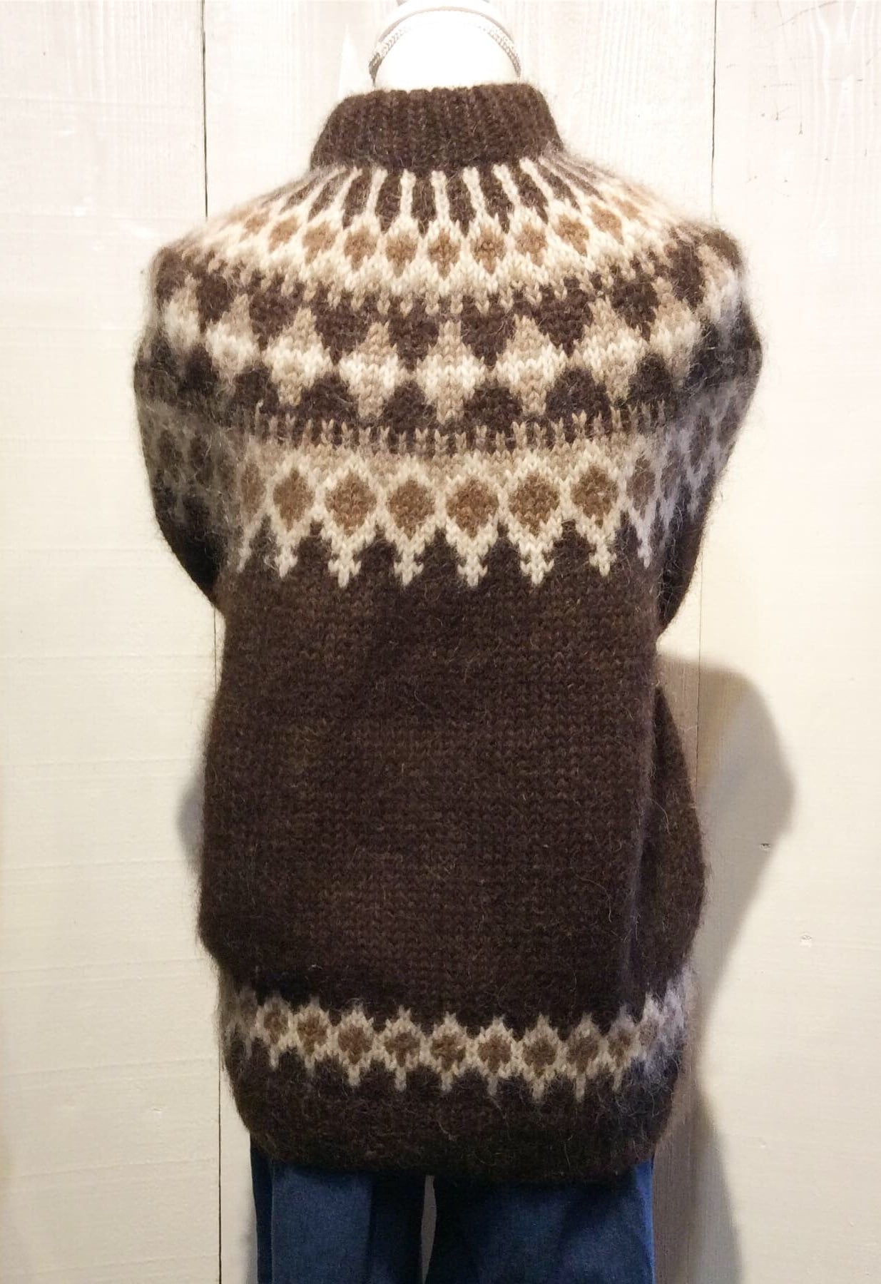 こげ茶・オフホワイト・マスタードブラウン・ベージュの毛糸の色使いも
