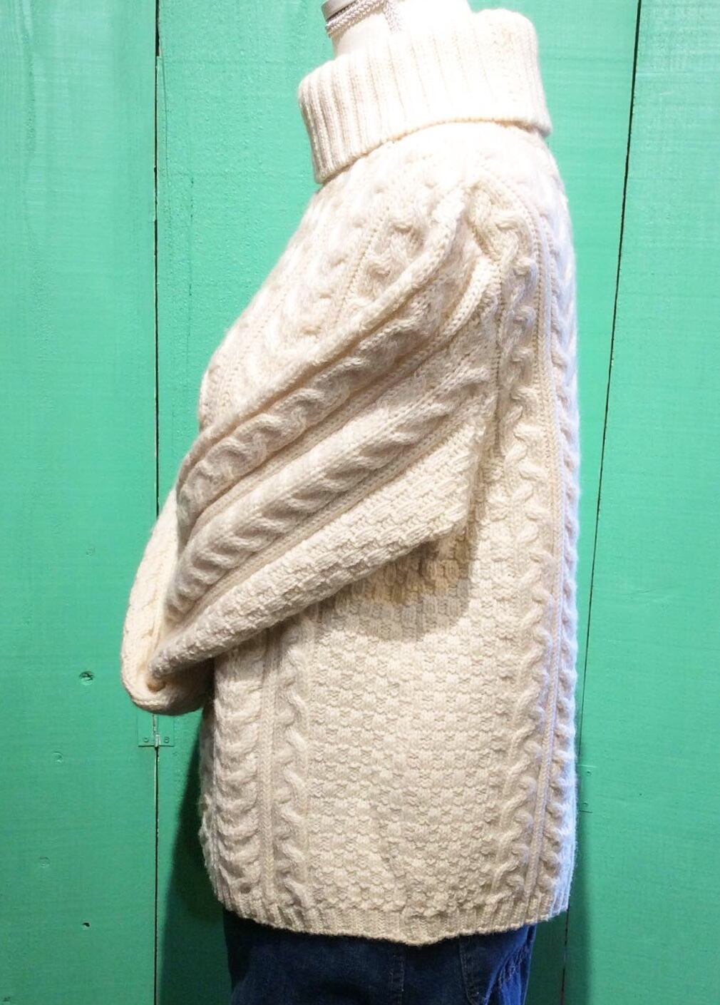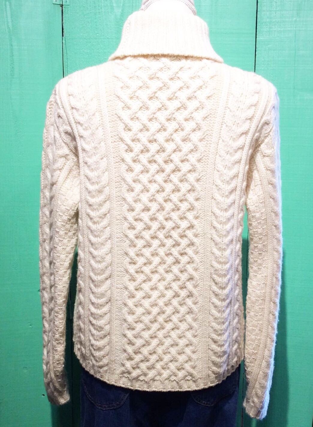 中太の毛糸で 手編みで編まれていて、袖や肩・脇などは