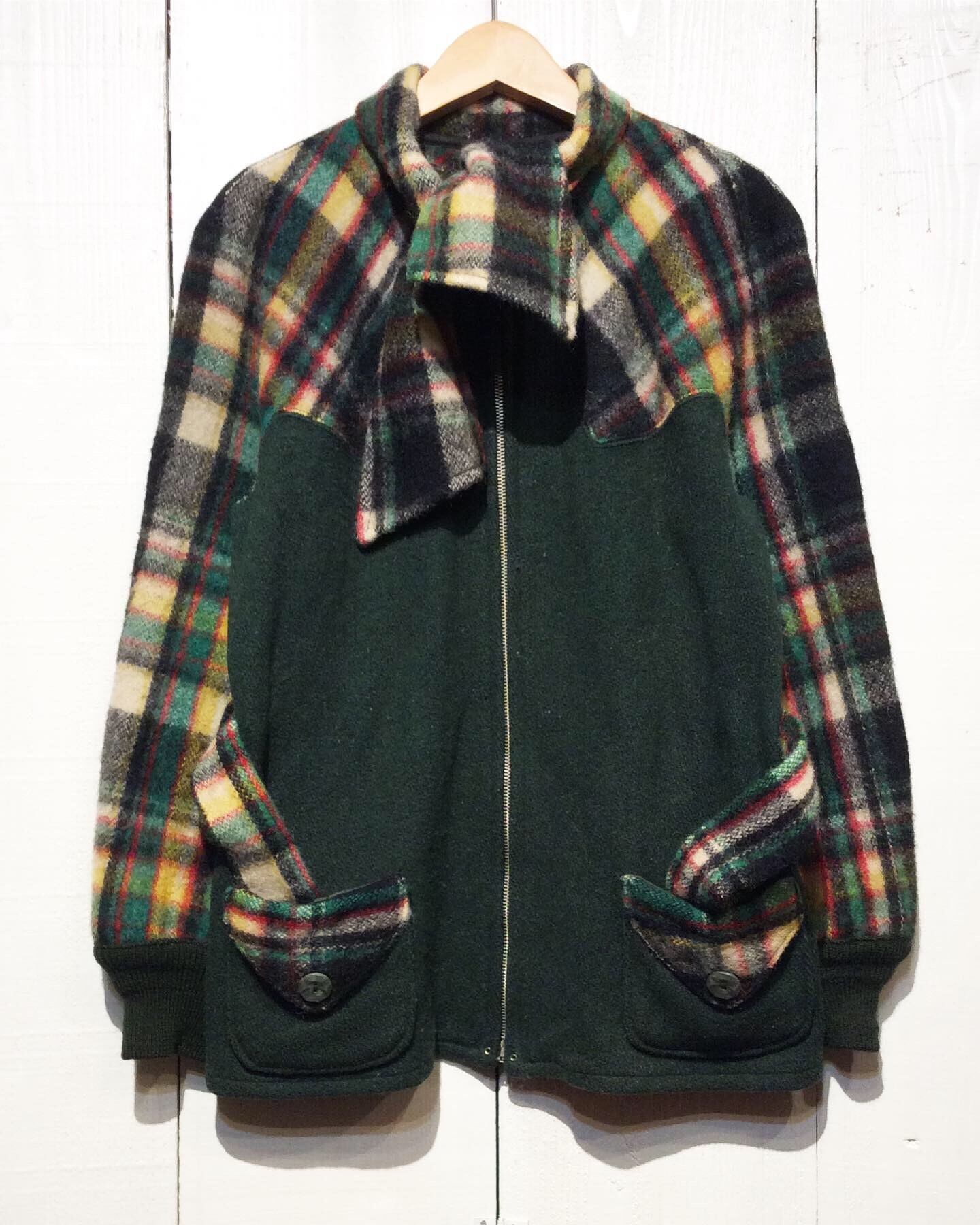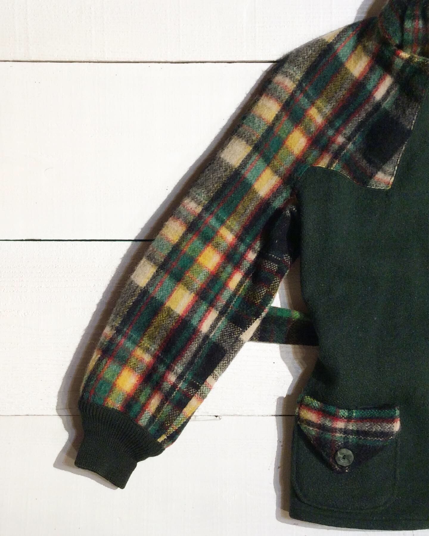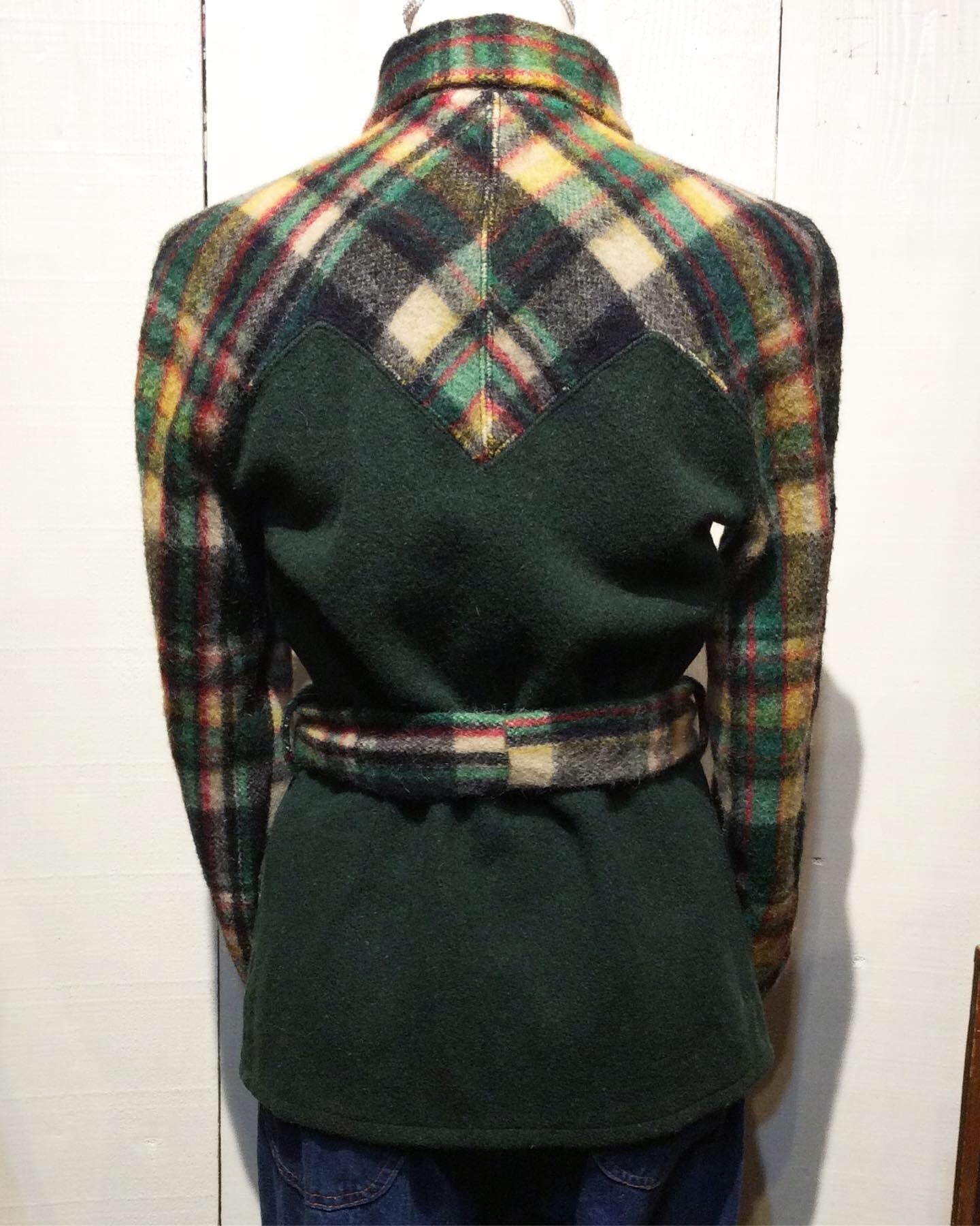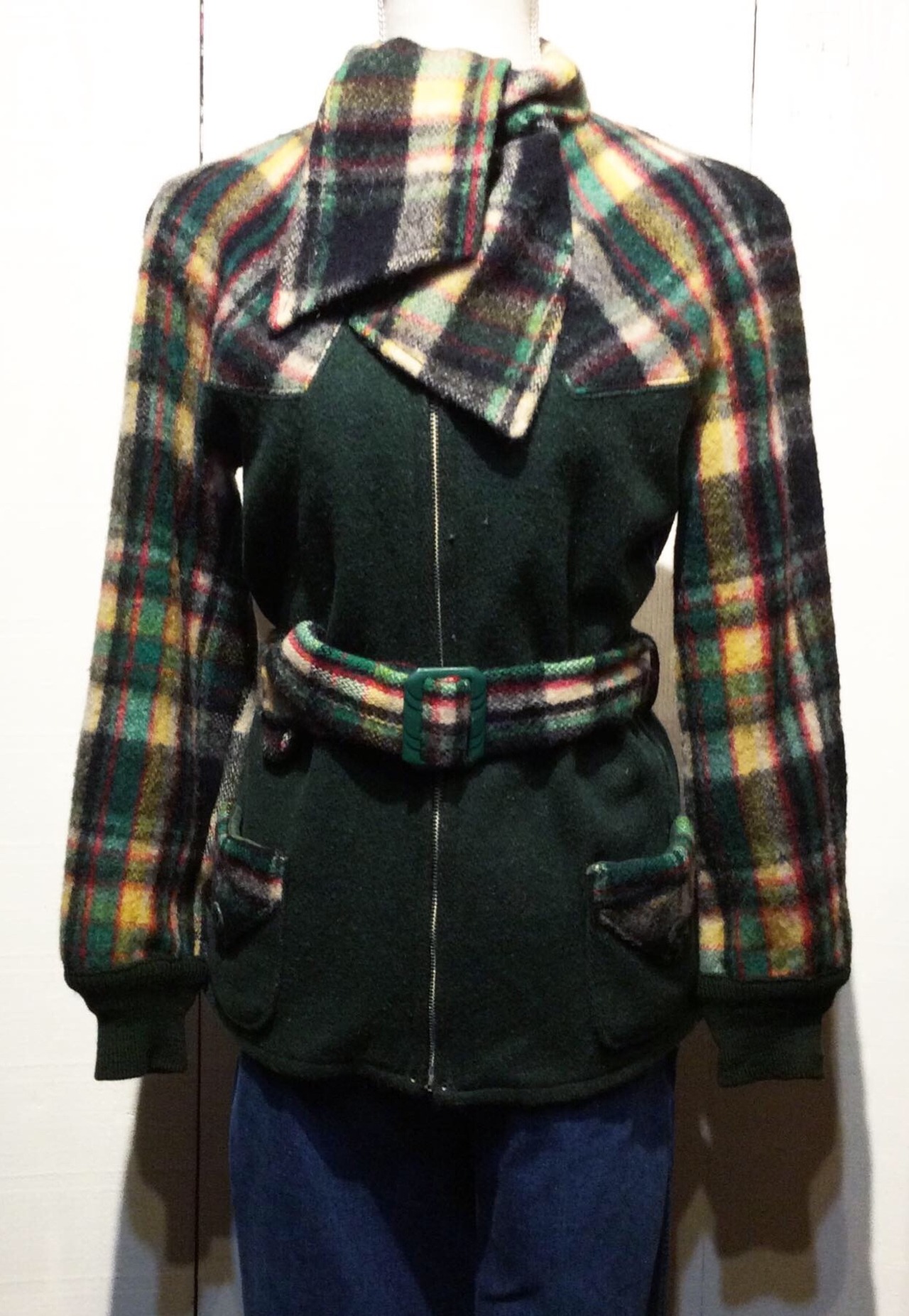身頃が、少しネップの入ったような深緑の メルトンウール。