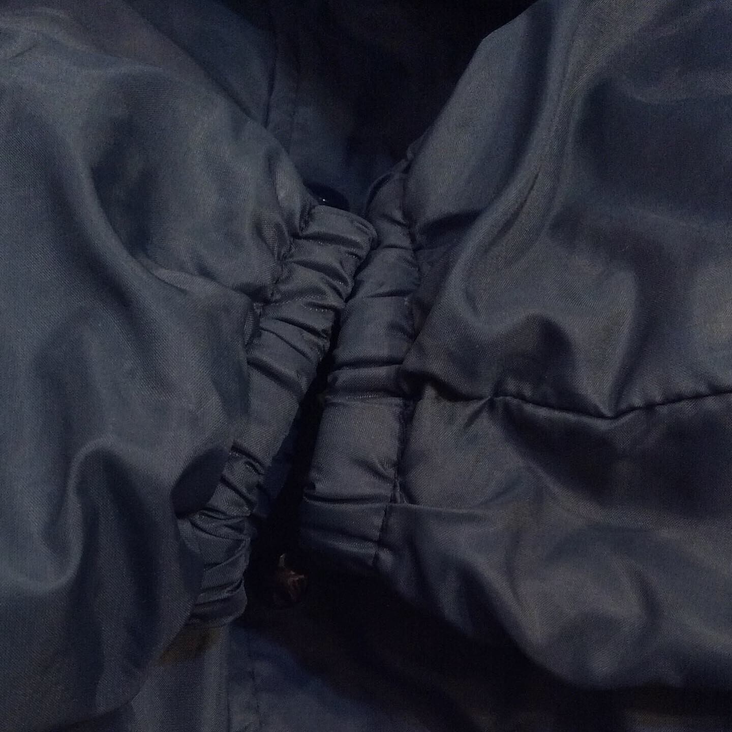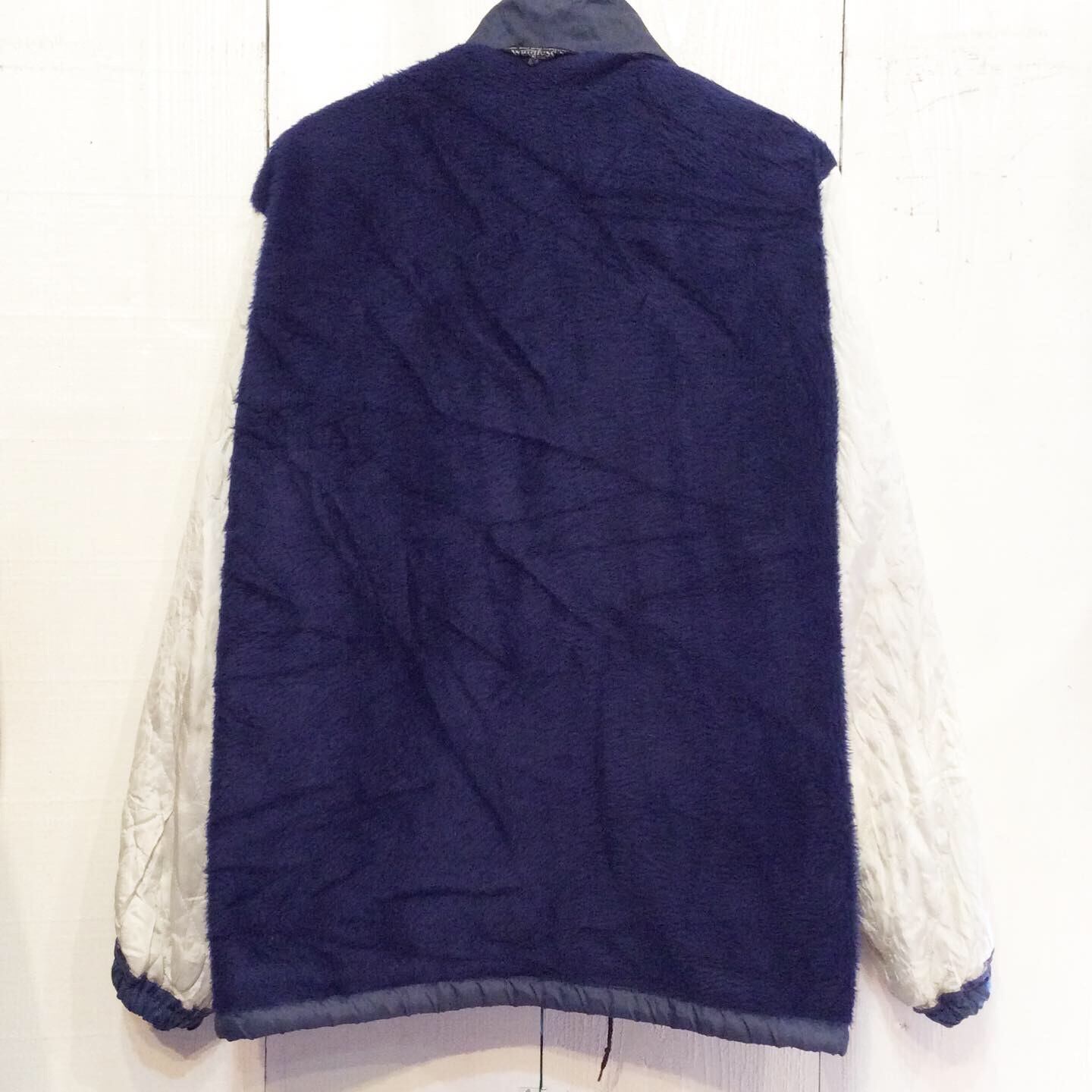 内側は、紺色のボアと オフホワイトのサテンのキルティング袖