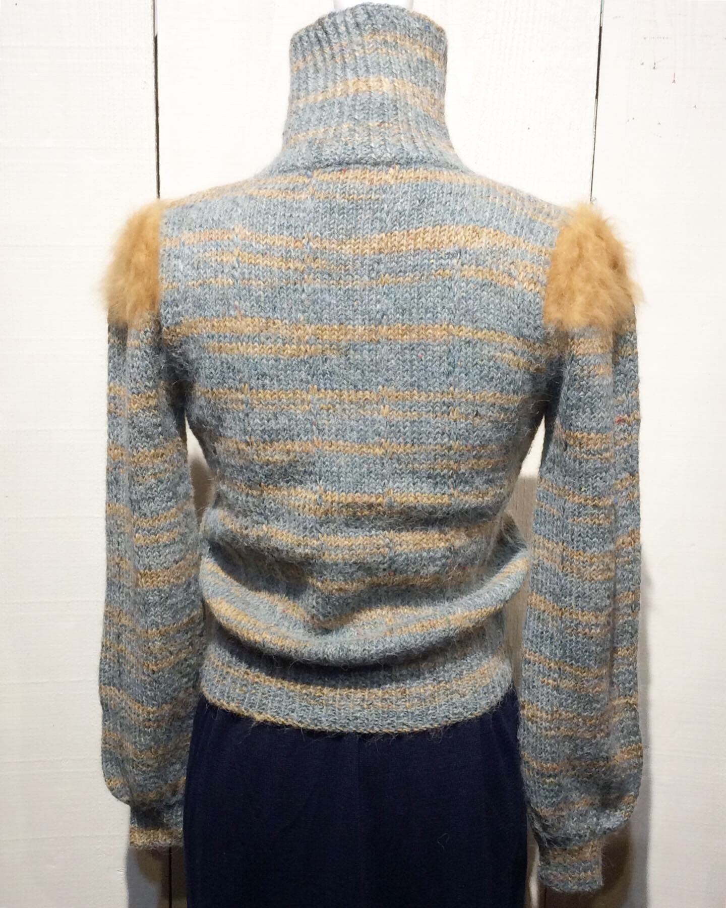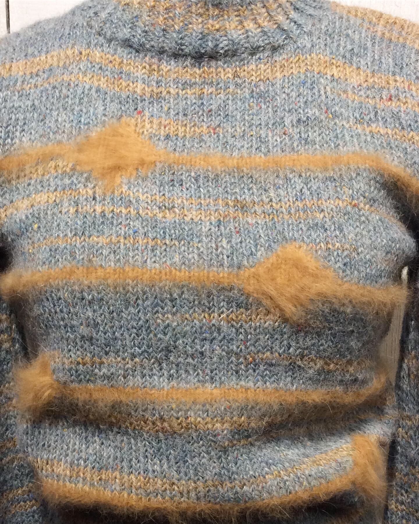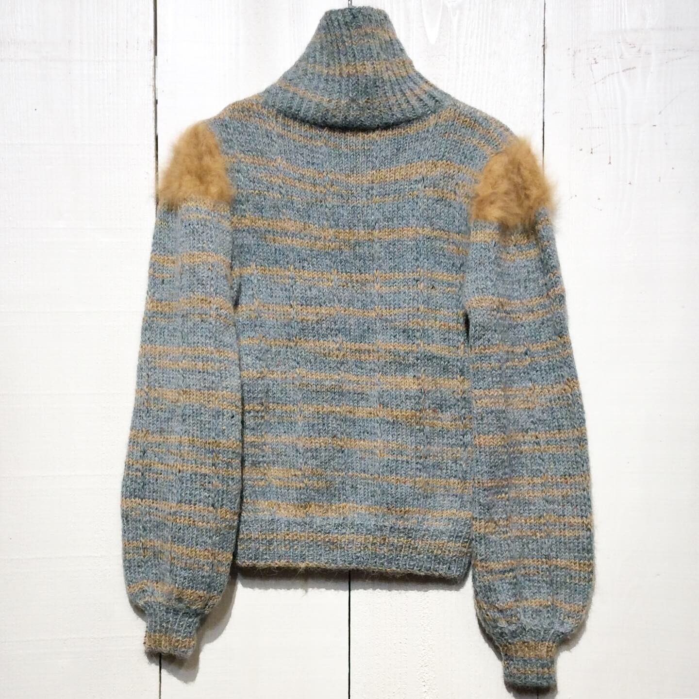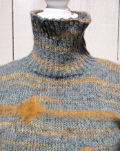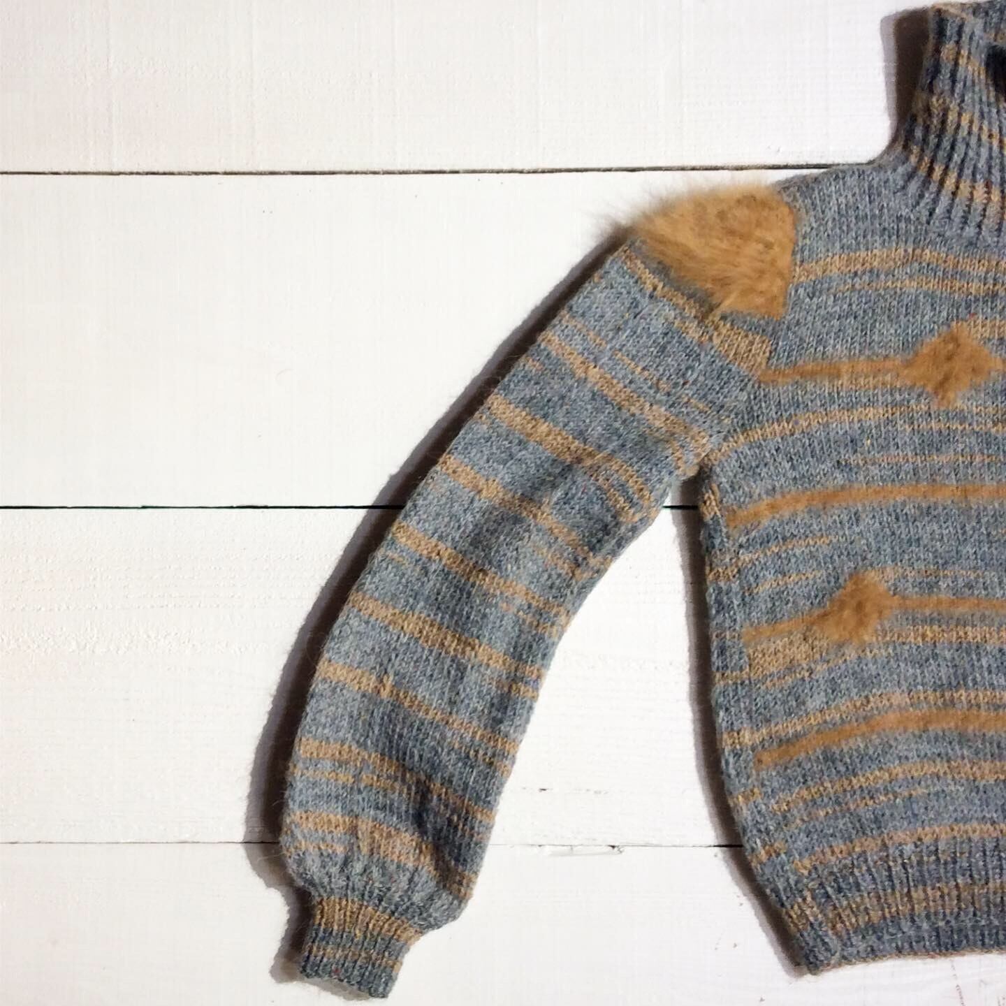 キャメル色のアンゴラの毛糸で 横縞の模様が入っています。