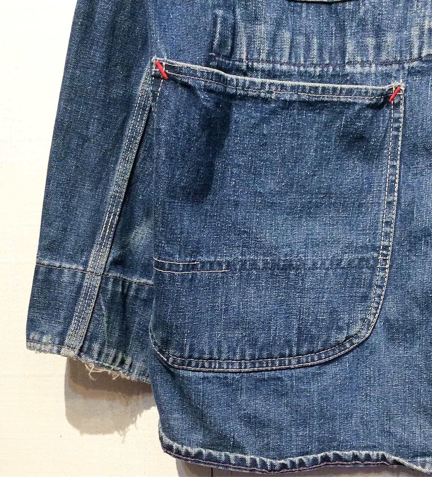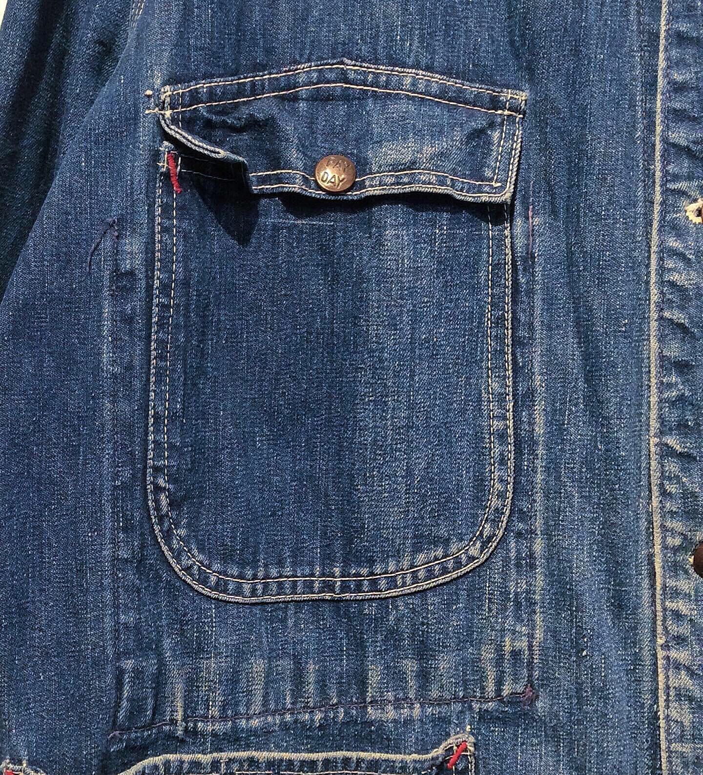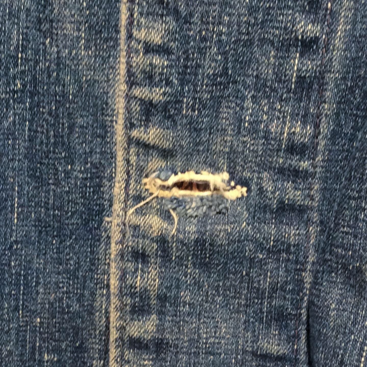 後ろ襟下に小さな穴と その下に茶色の小さなペンキ汚れが有ります。