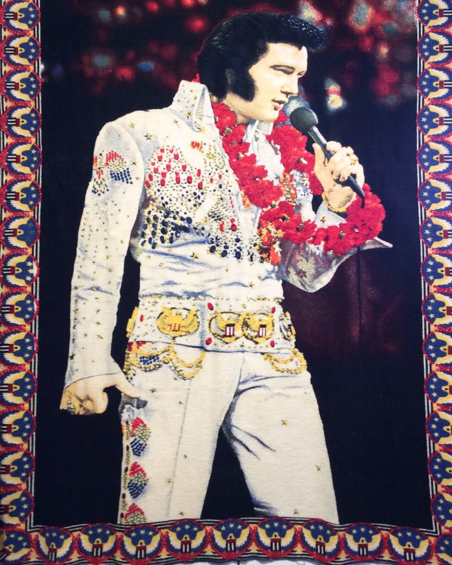 の時の アメリカンイーグルのスーツを着たプレスリーの絵になります。