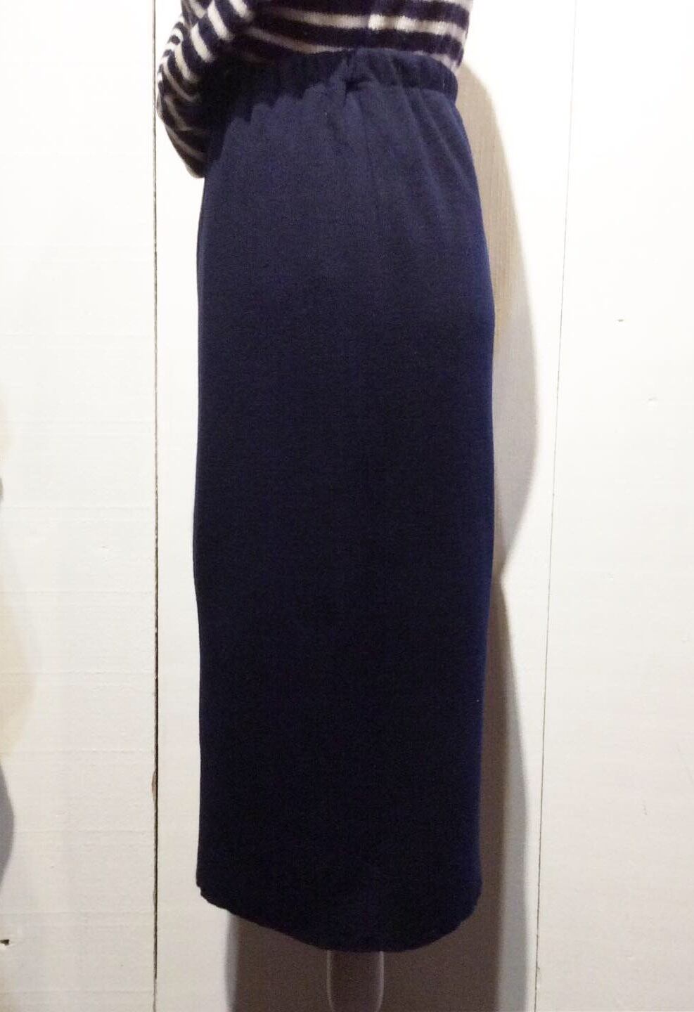 紺色の目の詰まった平織りのニットで 収縮性が有ります。