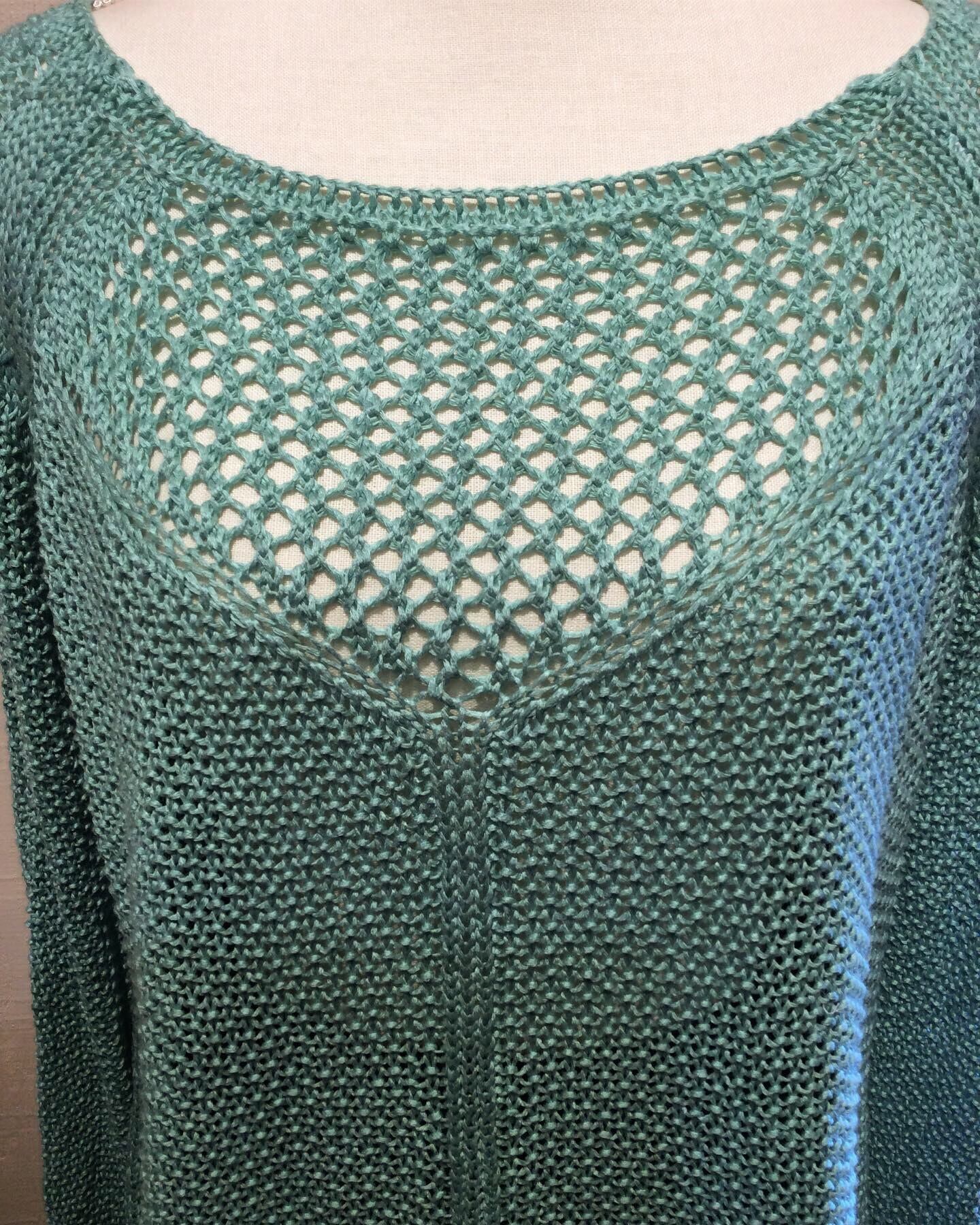 ラグラン袖のデザインで両脇裾にスリットが有ります。