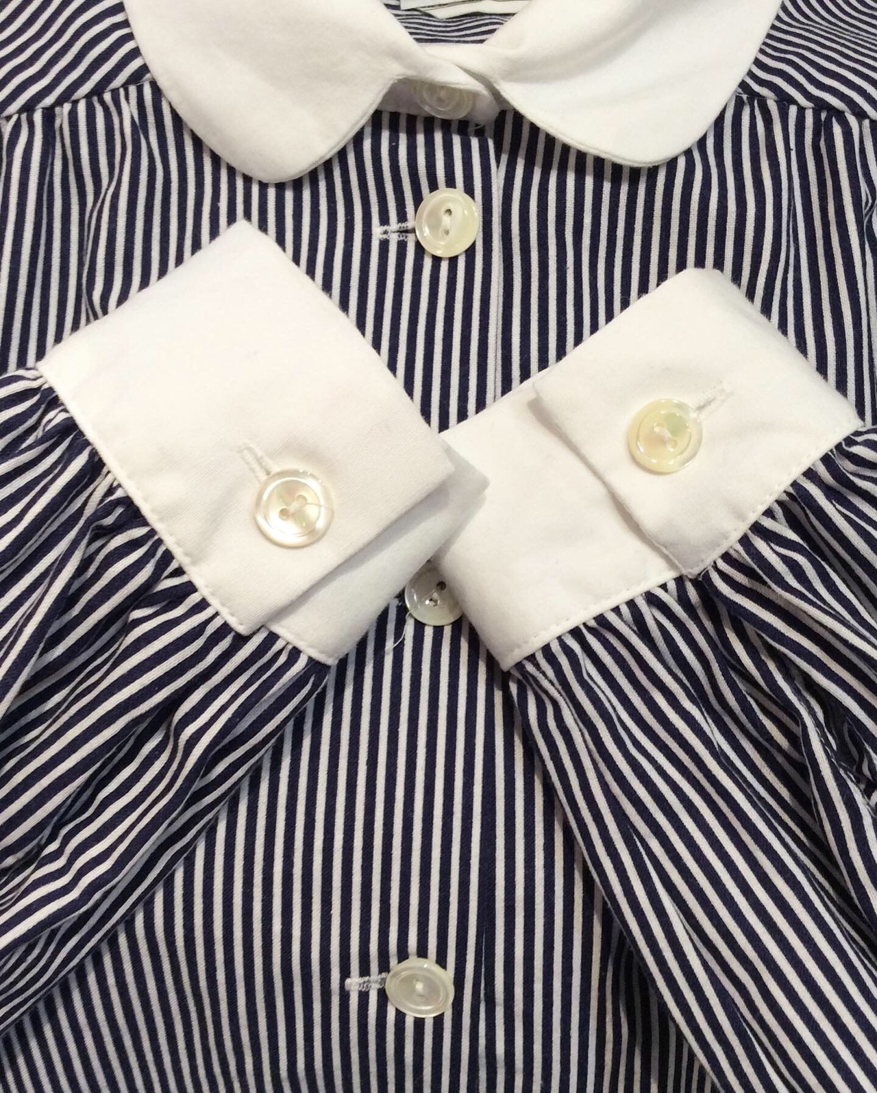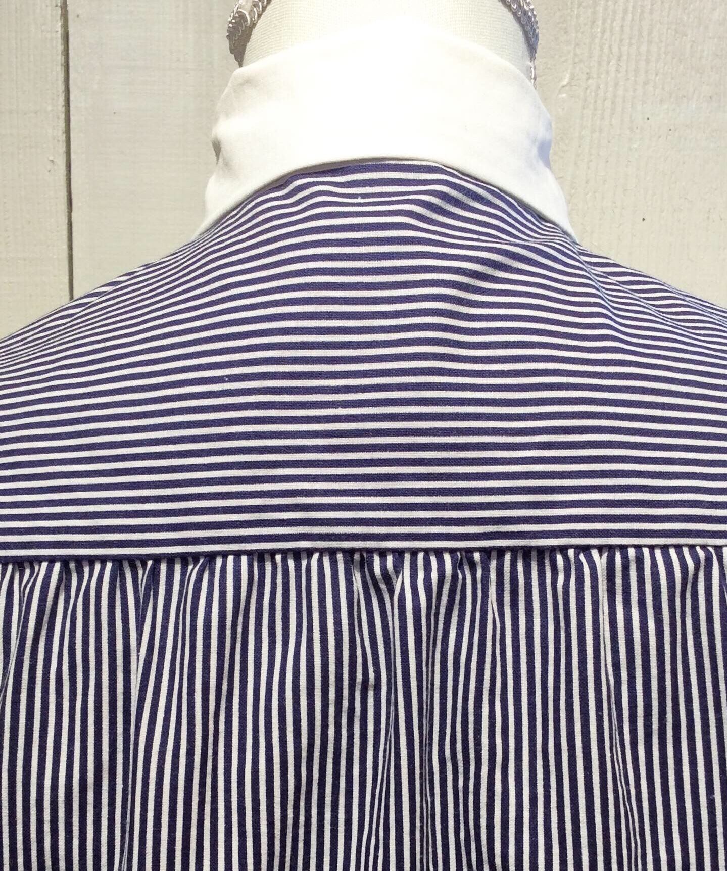 紺と白のストライプで後ろの肩ヨークはボーダーなのもポイントです。