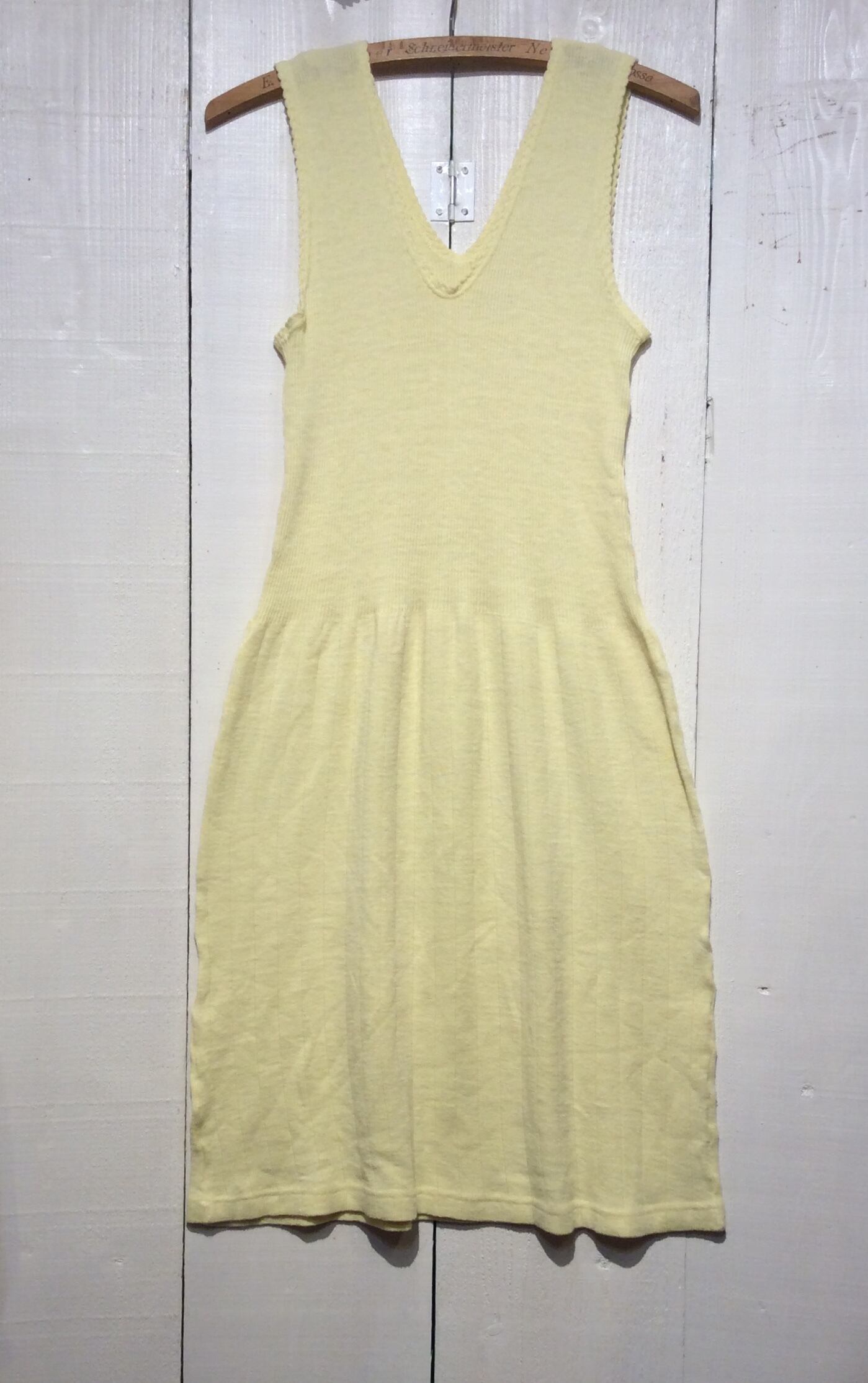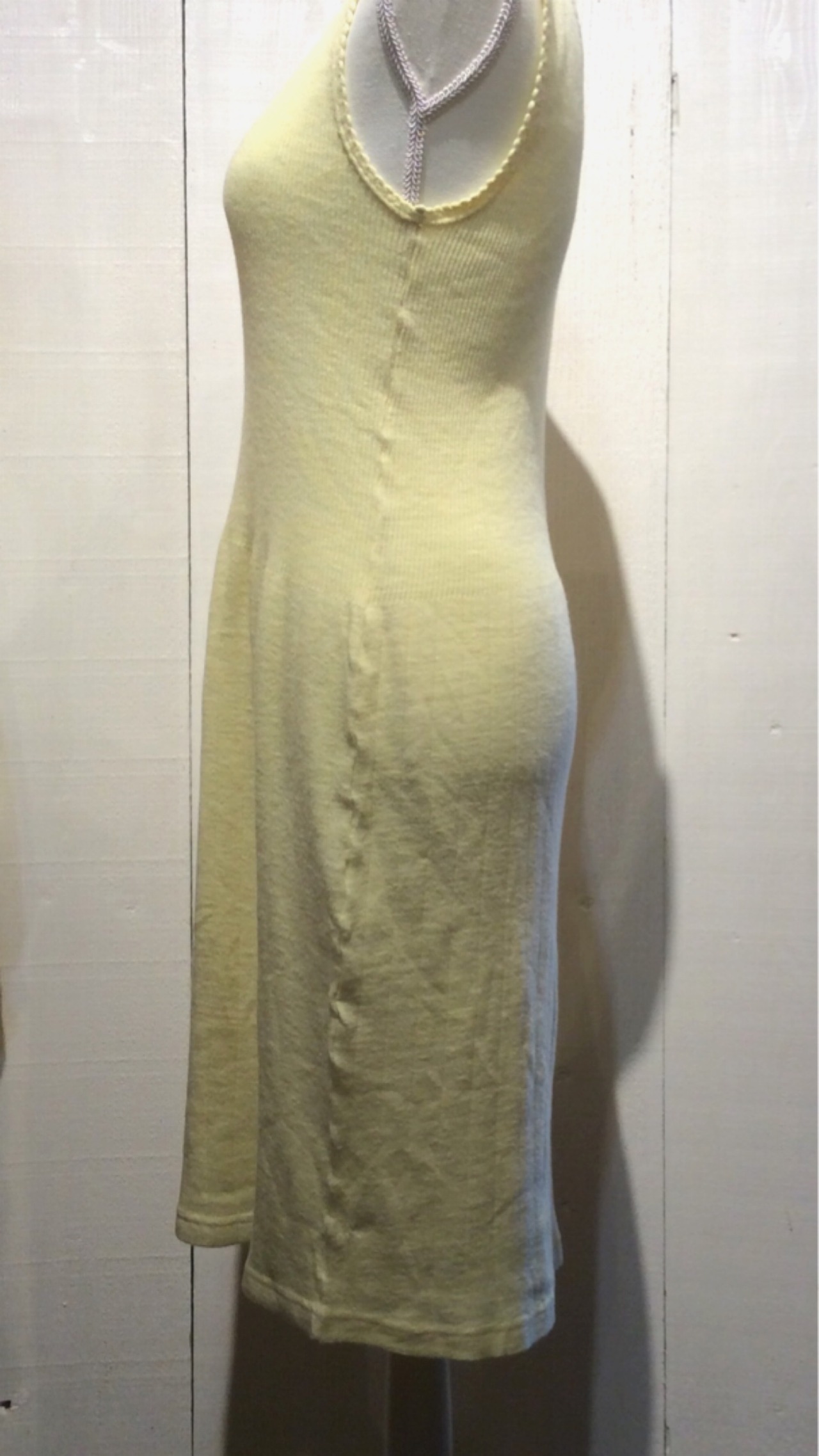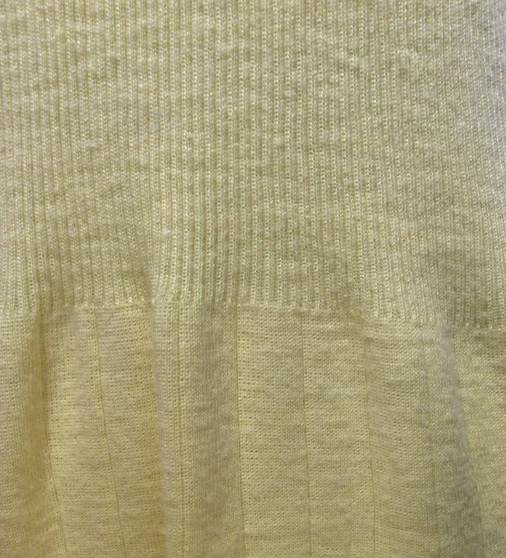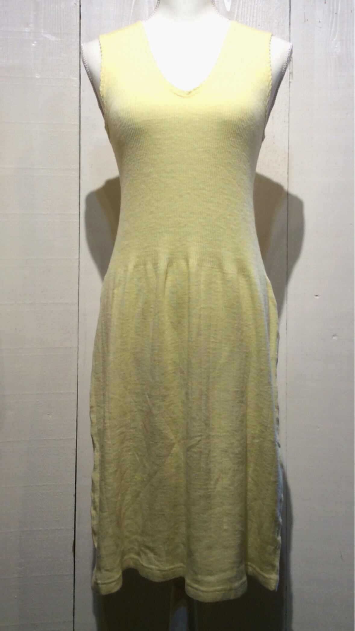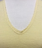 淡い黄色のライトニットで、ウールに少し別な繊維が入っていると思います。