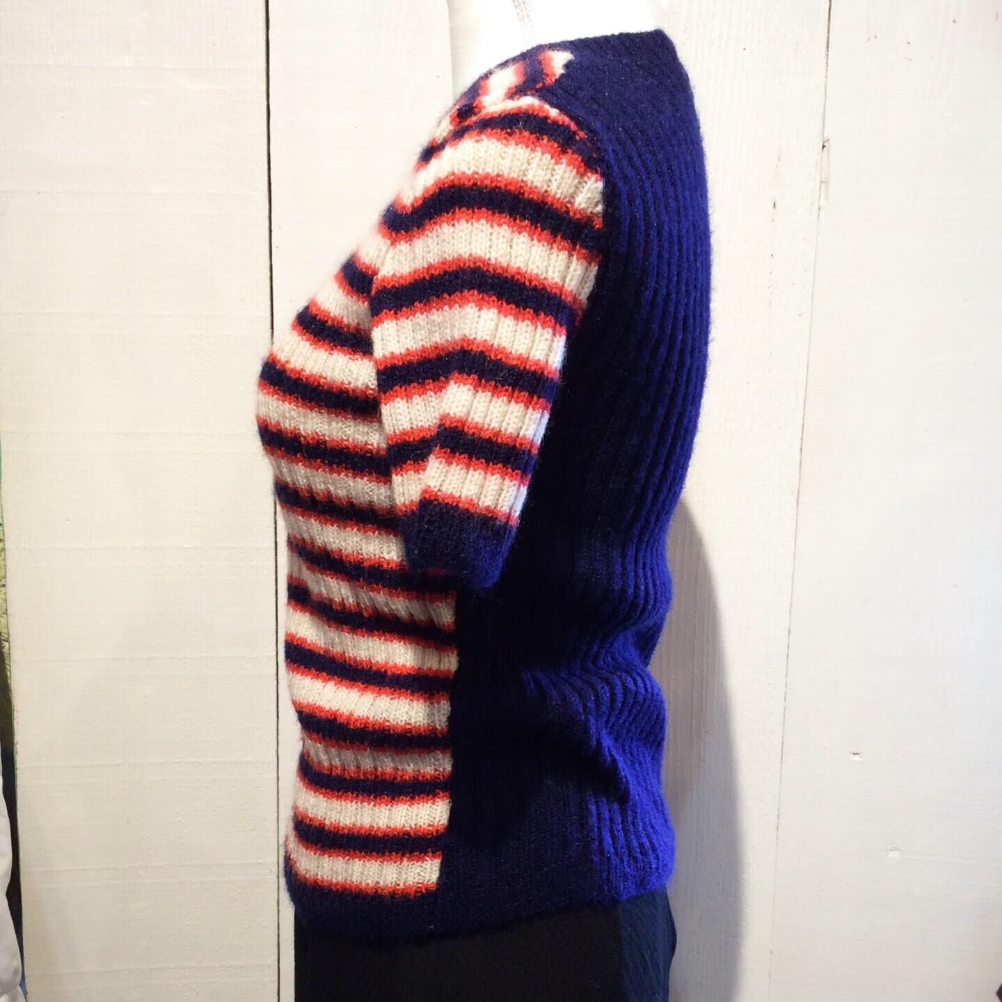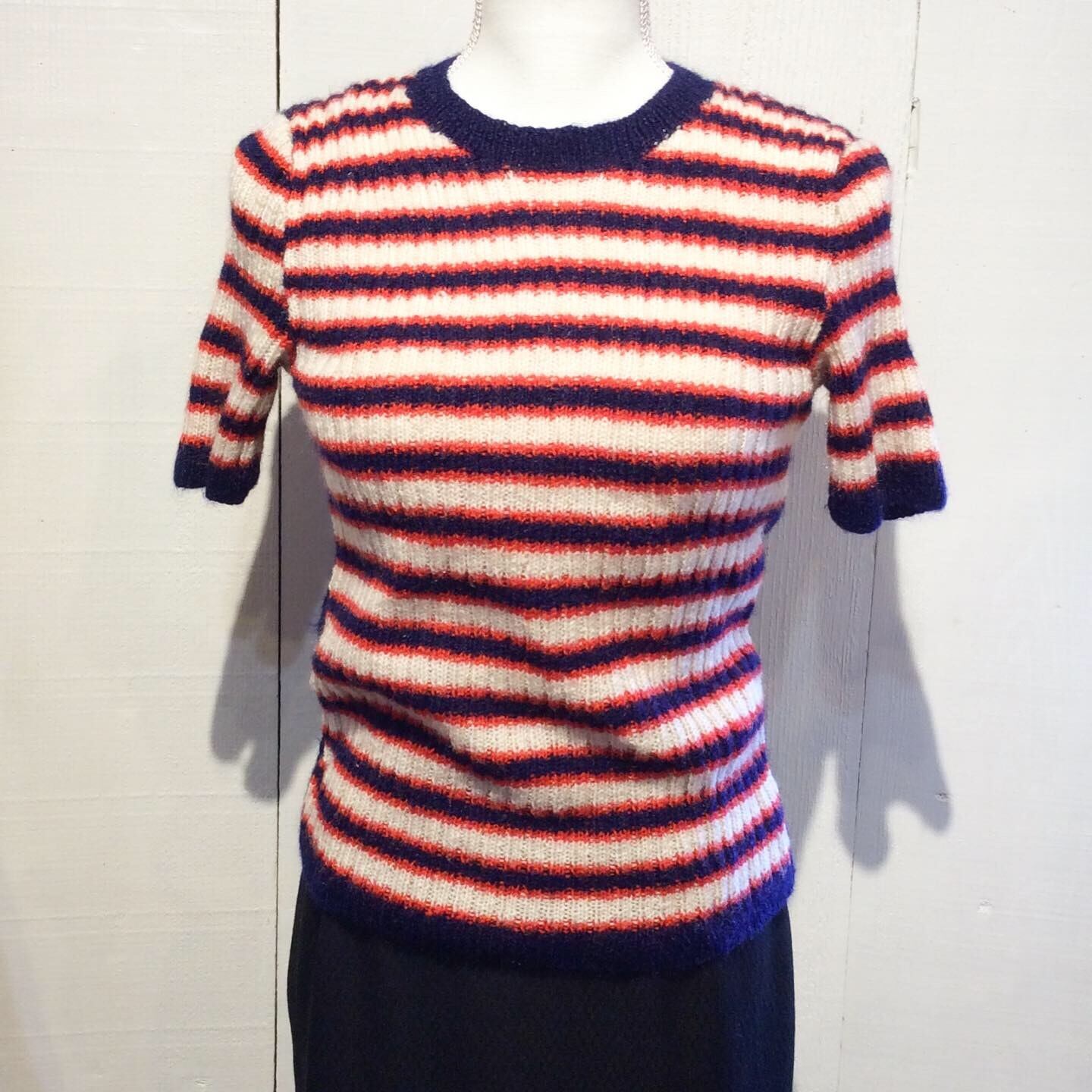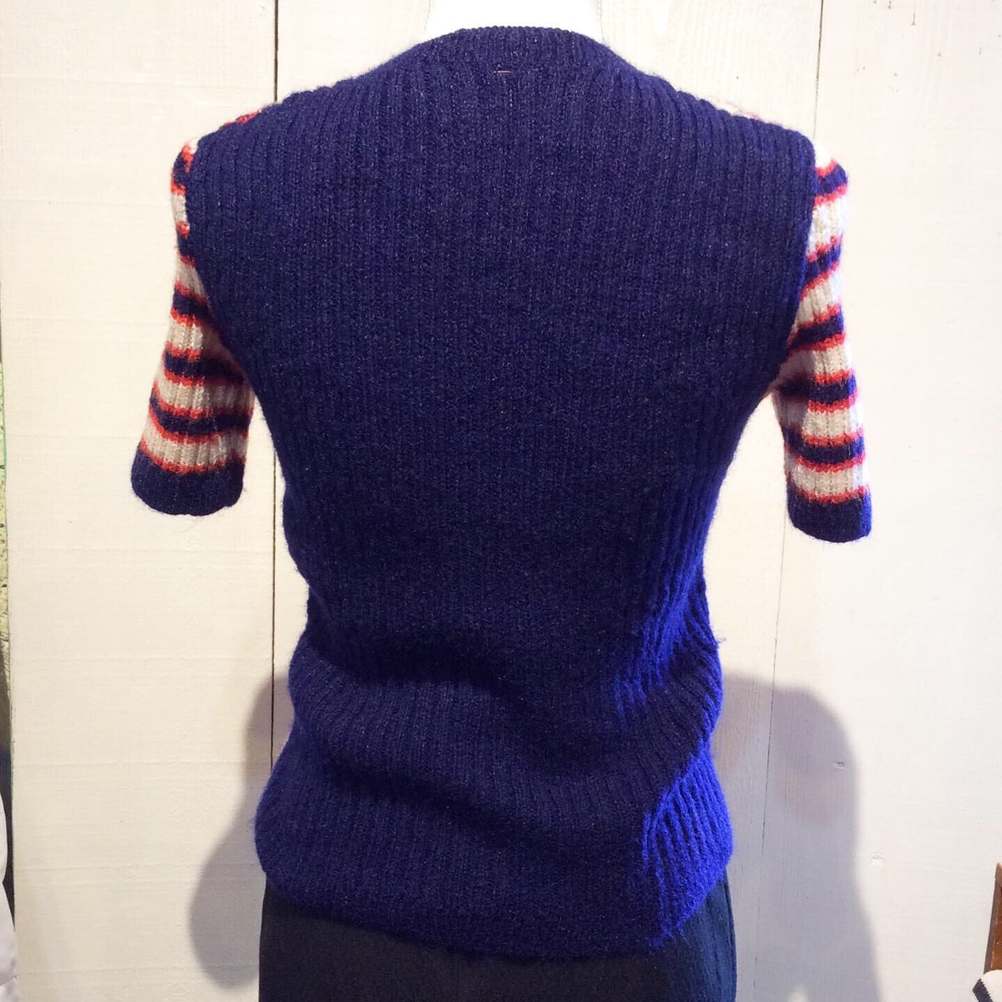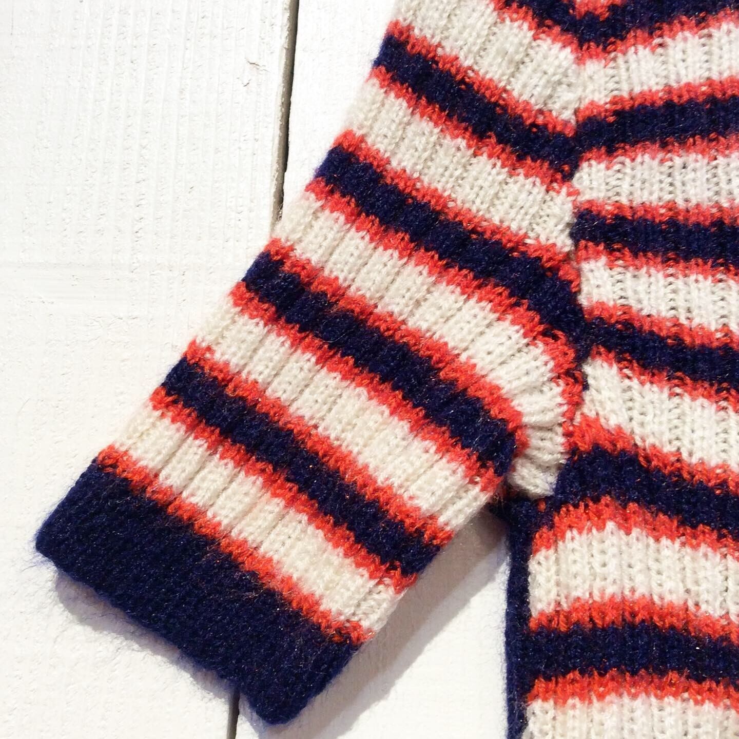 前身頃と袖が赤・紺・オフホワイトの ボーダーで