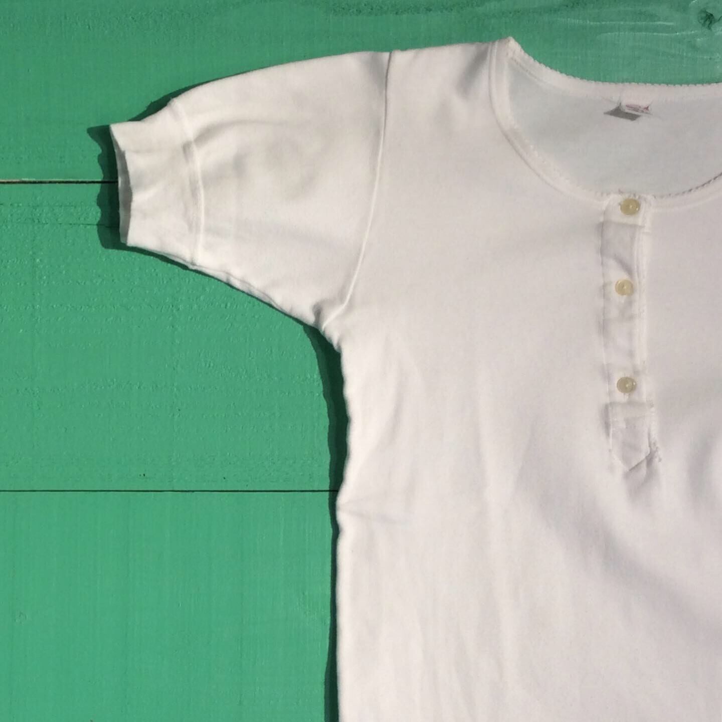 ヨーロッパ製の70年代頃のヘンリーネックのTシャツになります。