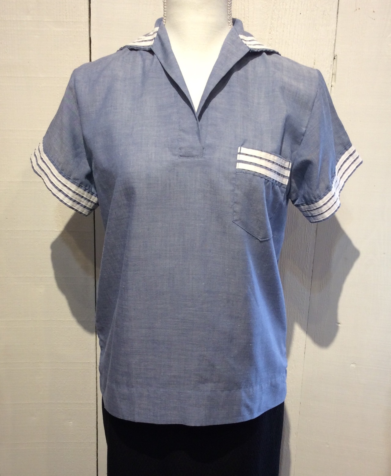 コットン50% ポリエステル50%のシャツ位の厚みのシャンブレー生地で