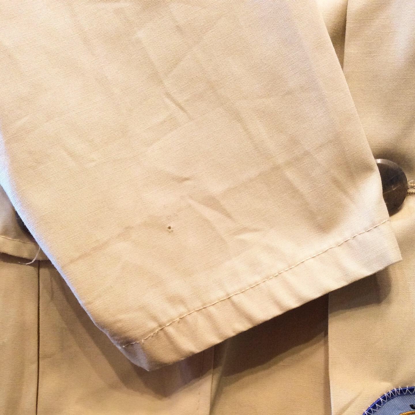 両袖口に折り返しの際の薄い線の汚れと 何かで留めていた様なピンホールが有ります。