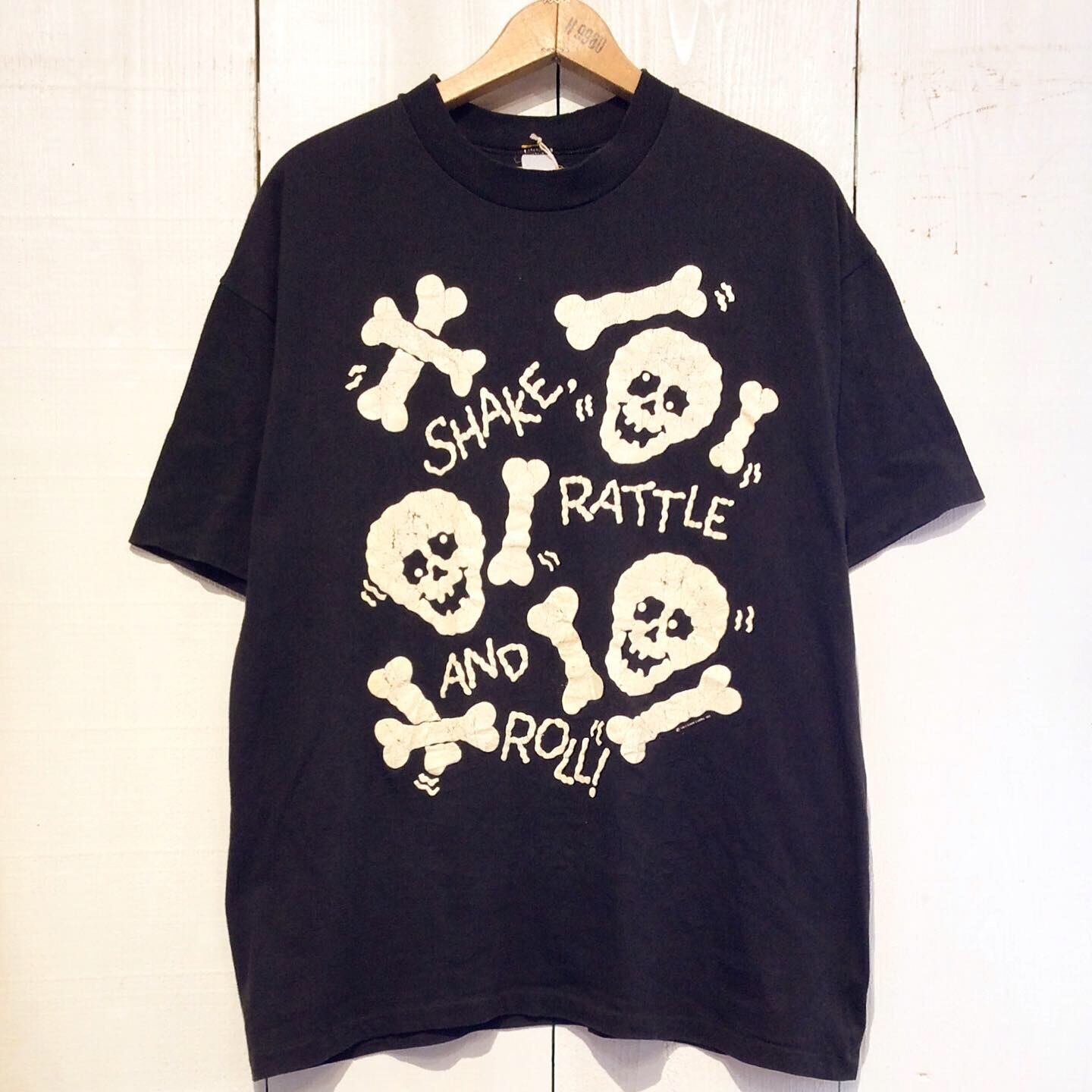 髑髏と骨のシェイクで プリントの素材はオフホワイトとクリーム色の中間の色の