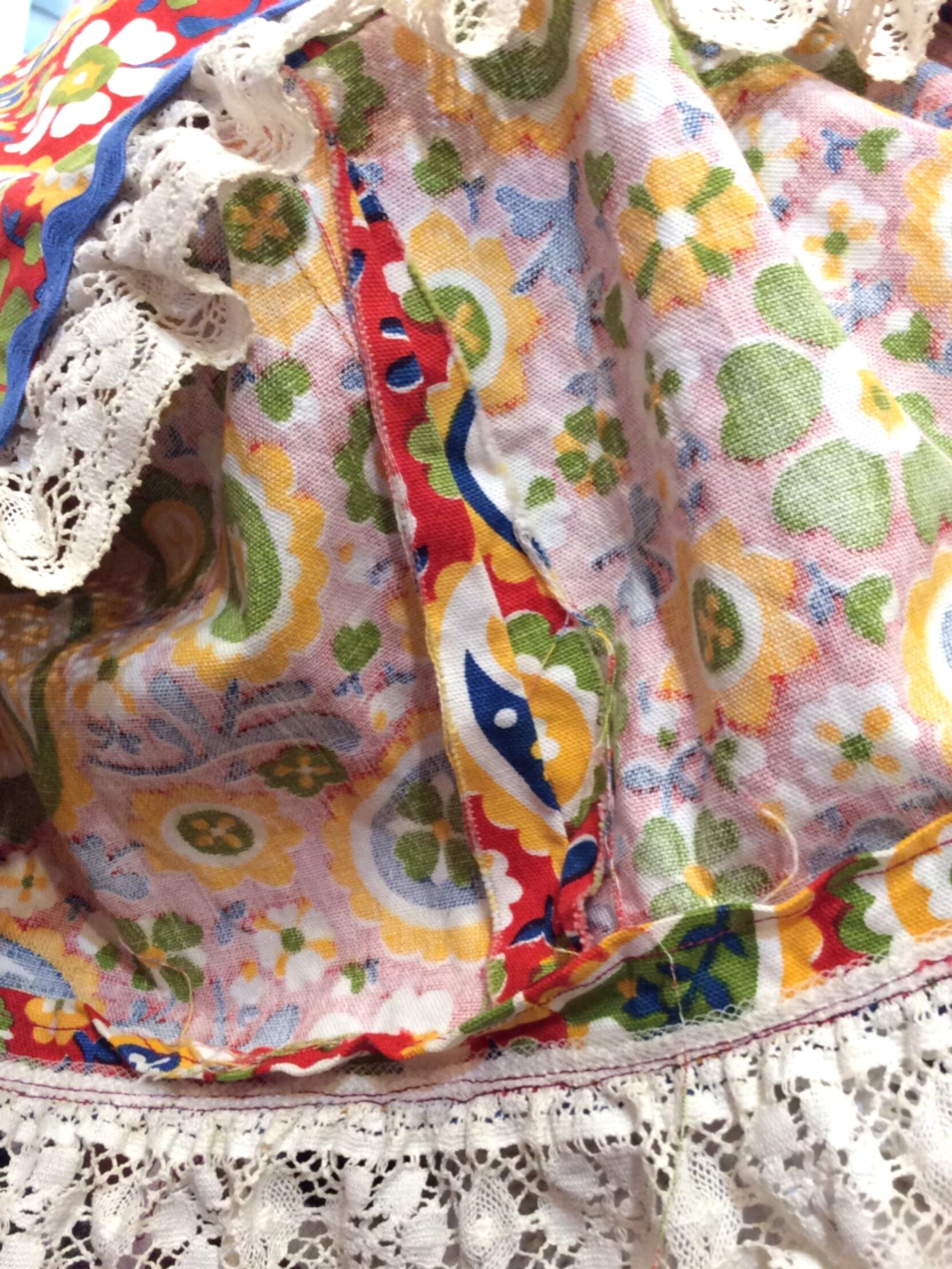 アメリカ製の70年代の布やレースとファスナーで作られている