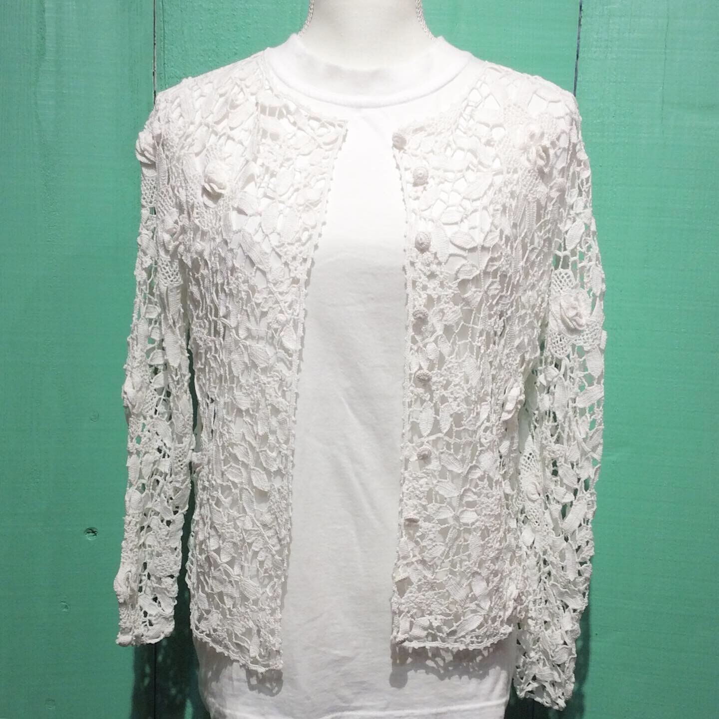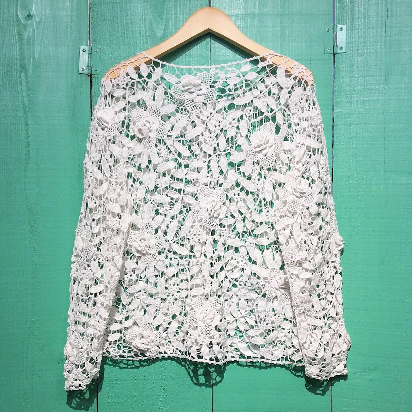 〜60年代頃の、ヨーロッパから来ました 手編みのレースのカーディガンになります。