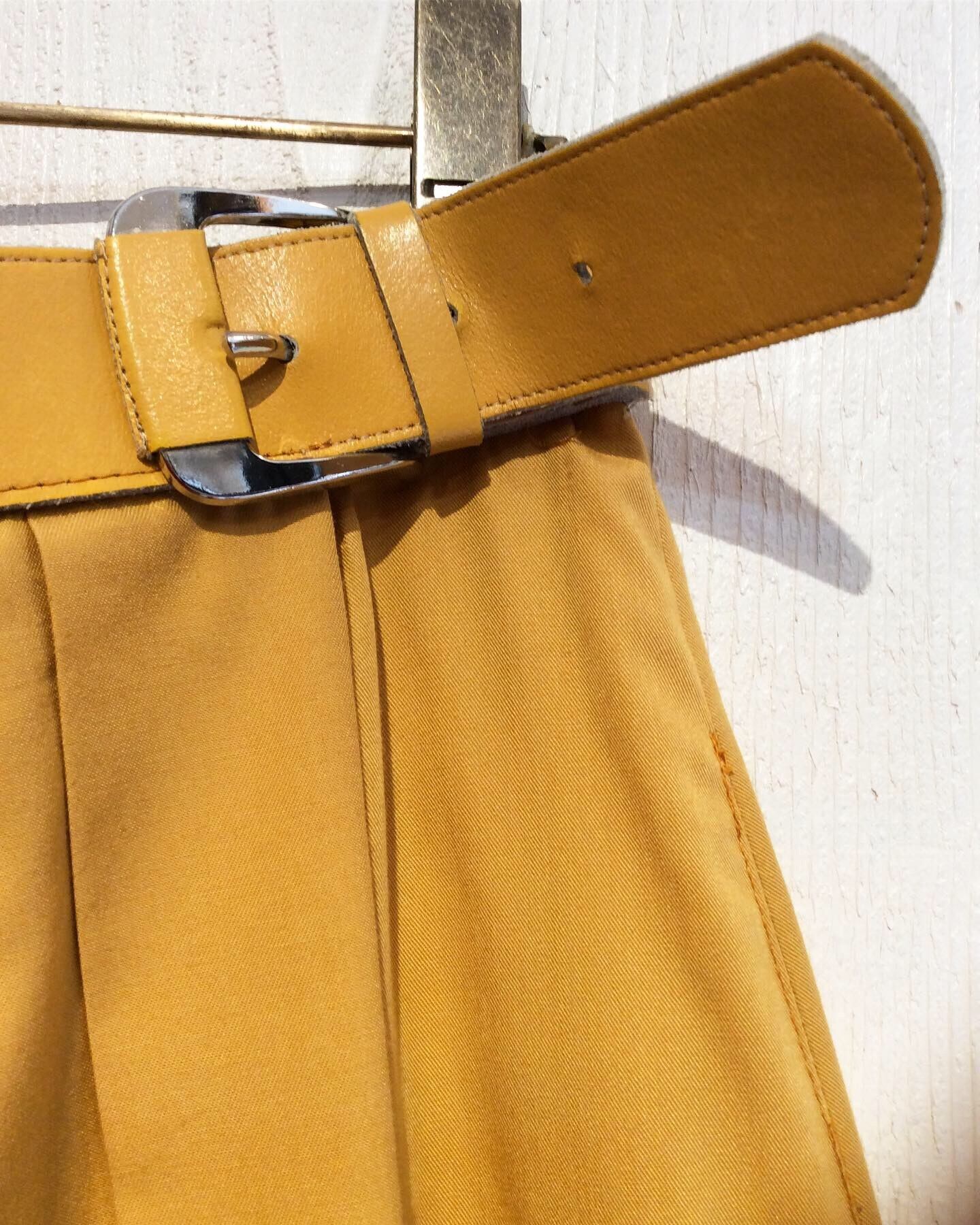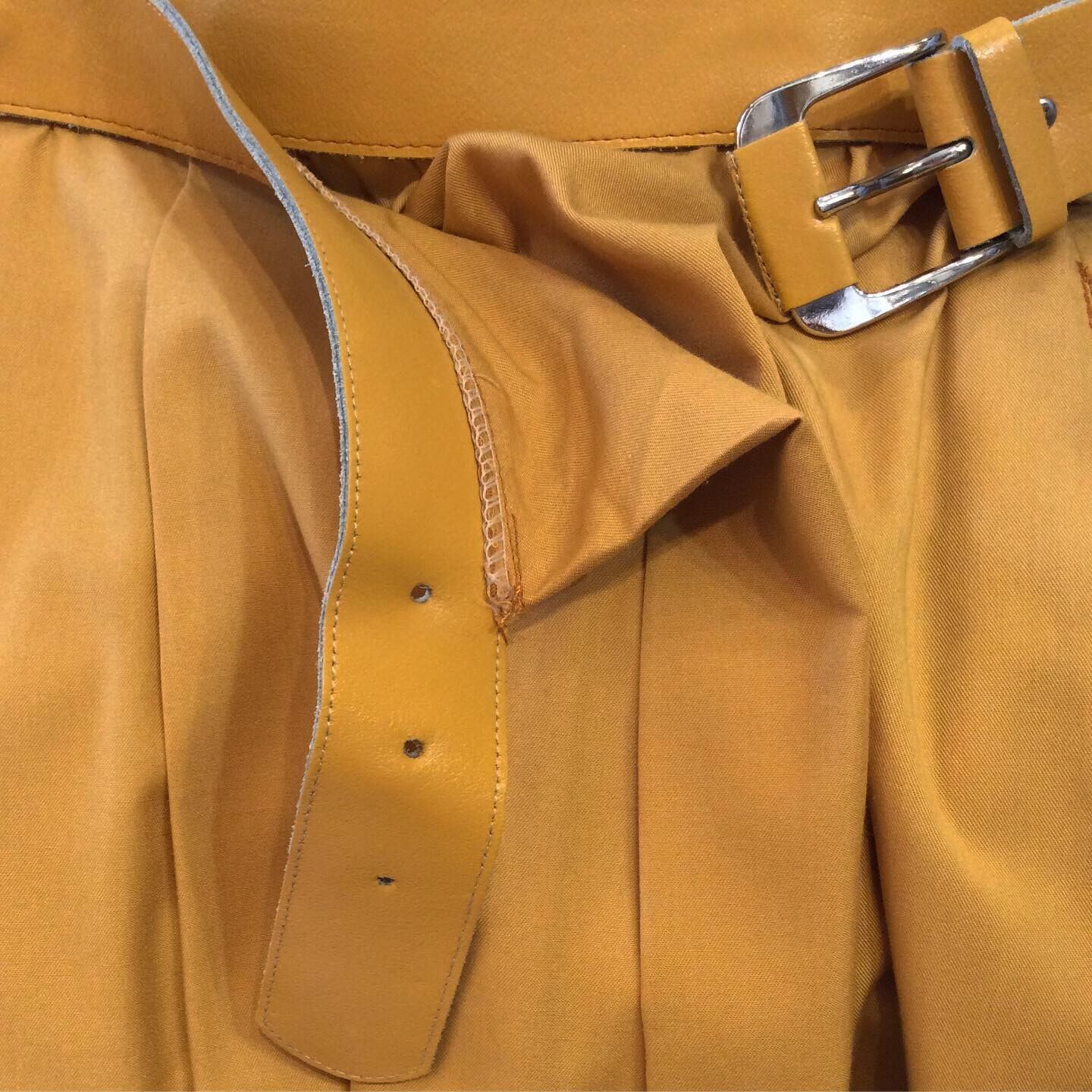 ベルトは 明るいマスタードカラーのフェイクレザーで