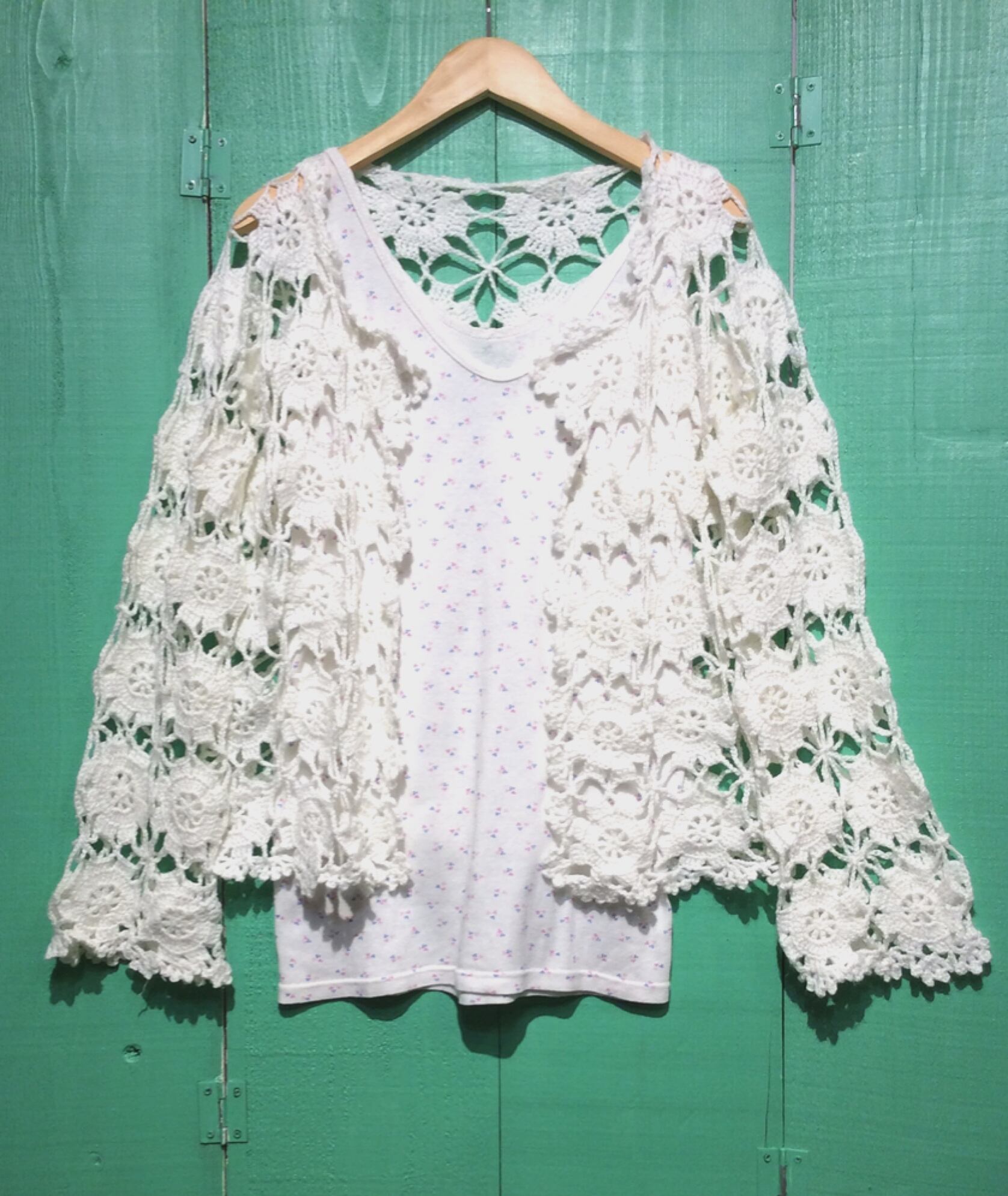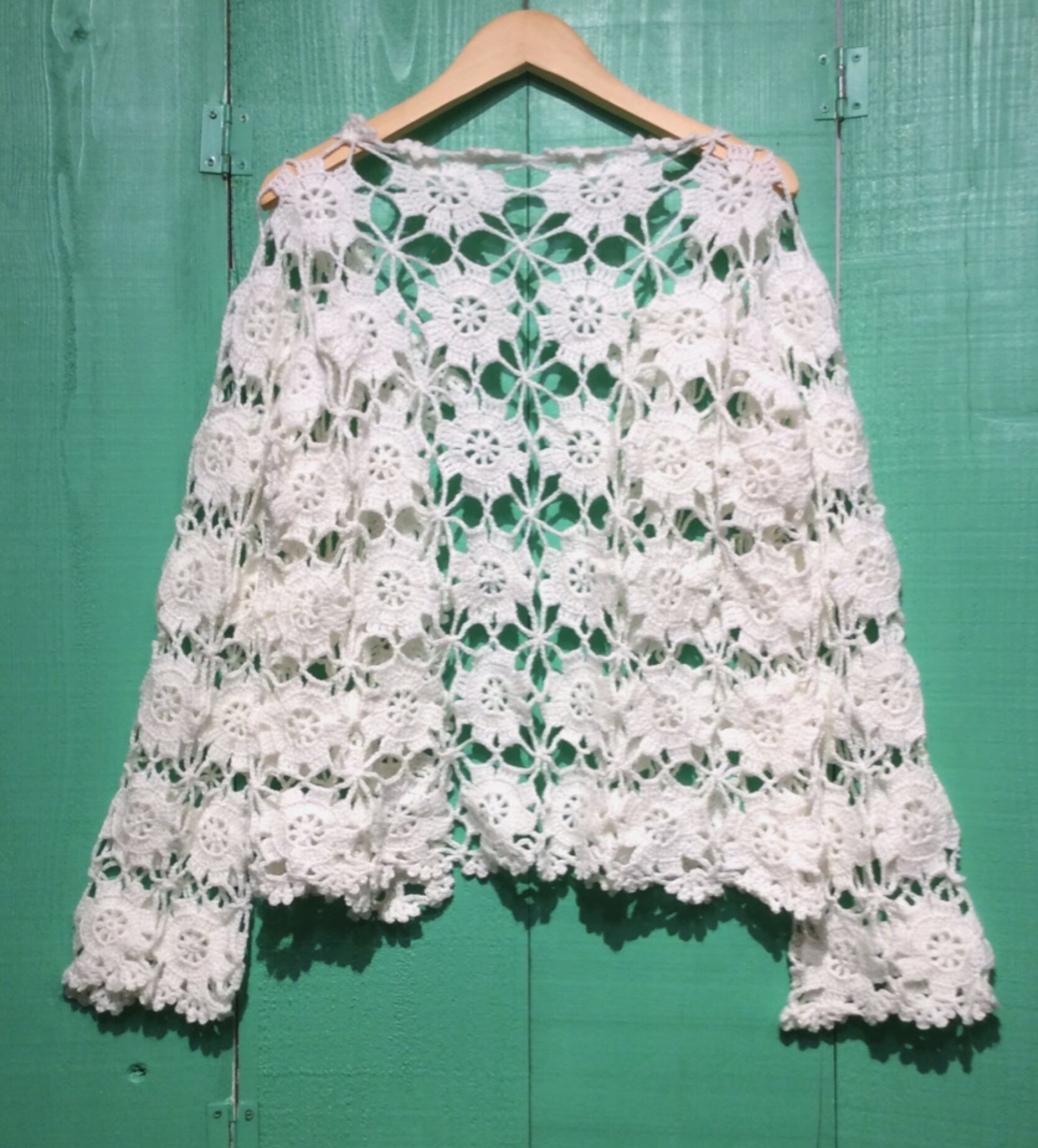 70年代〜の、ヨーロッパから来ました 手編みのクロシェカーディガンになります。