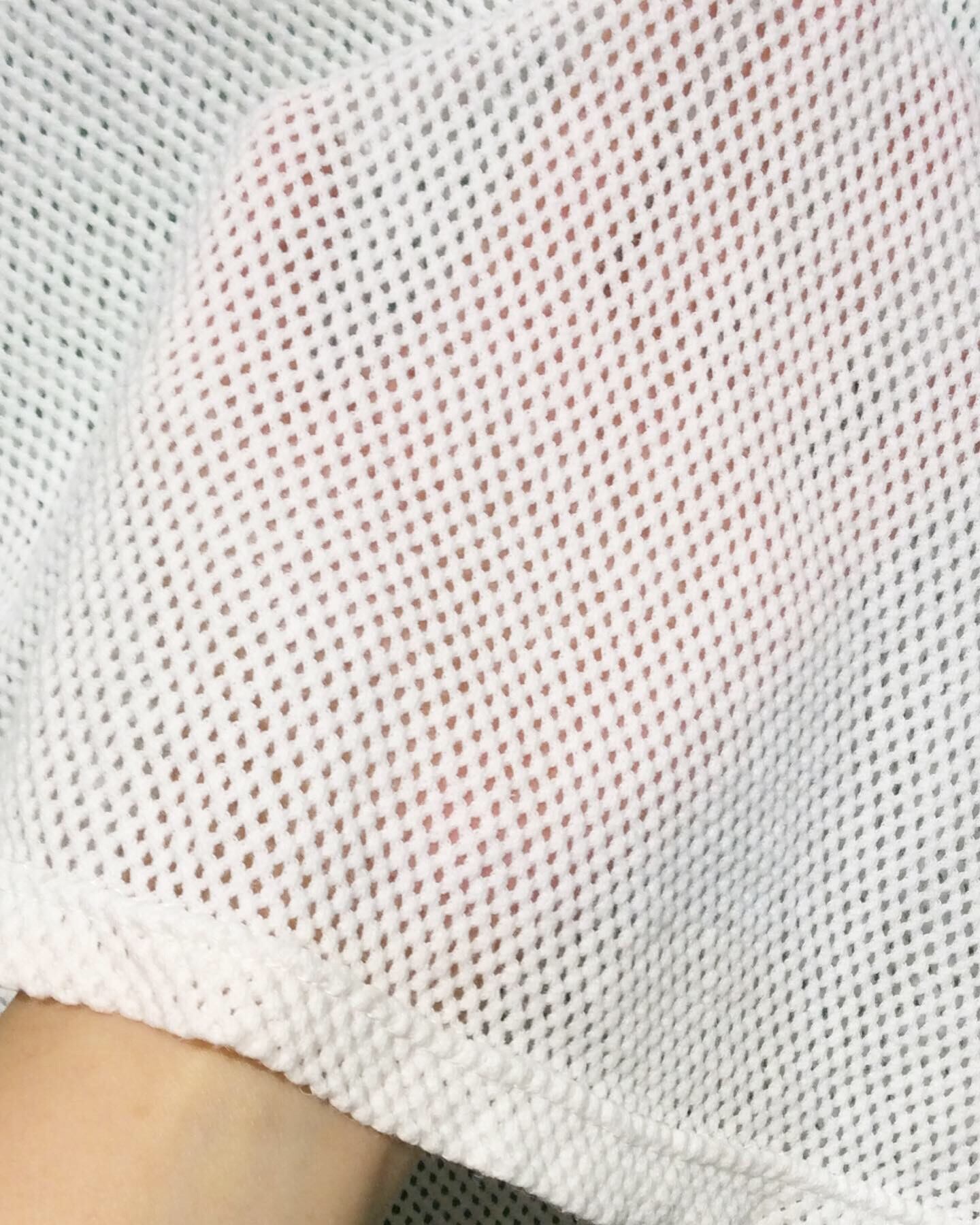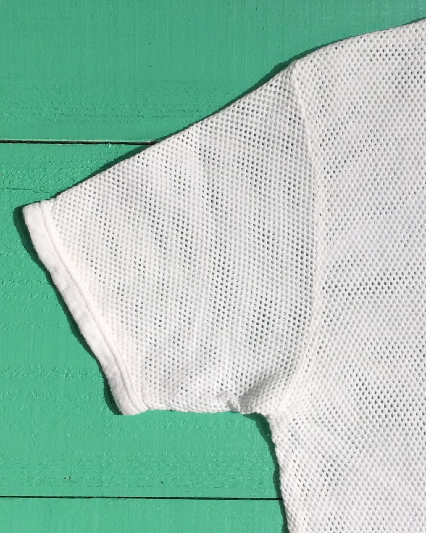 白のコットン100%の素材で、ポリエステルのメッシュよりも