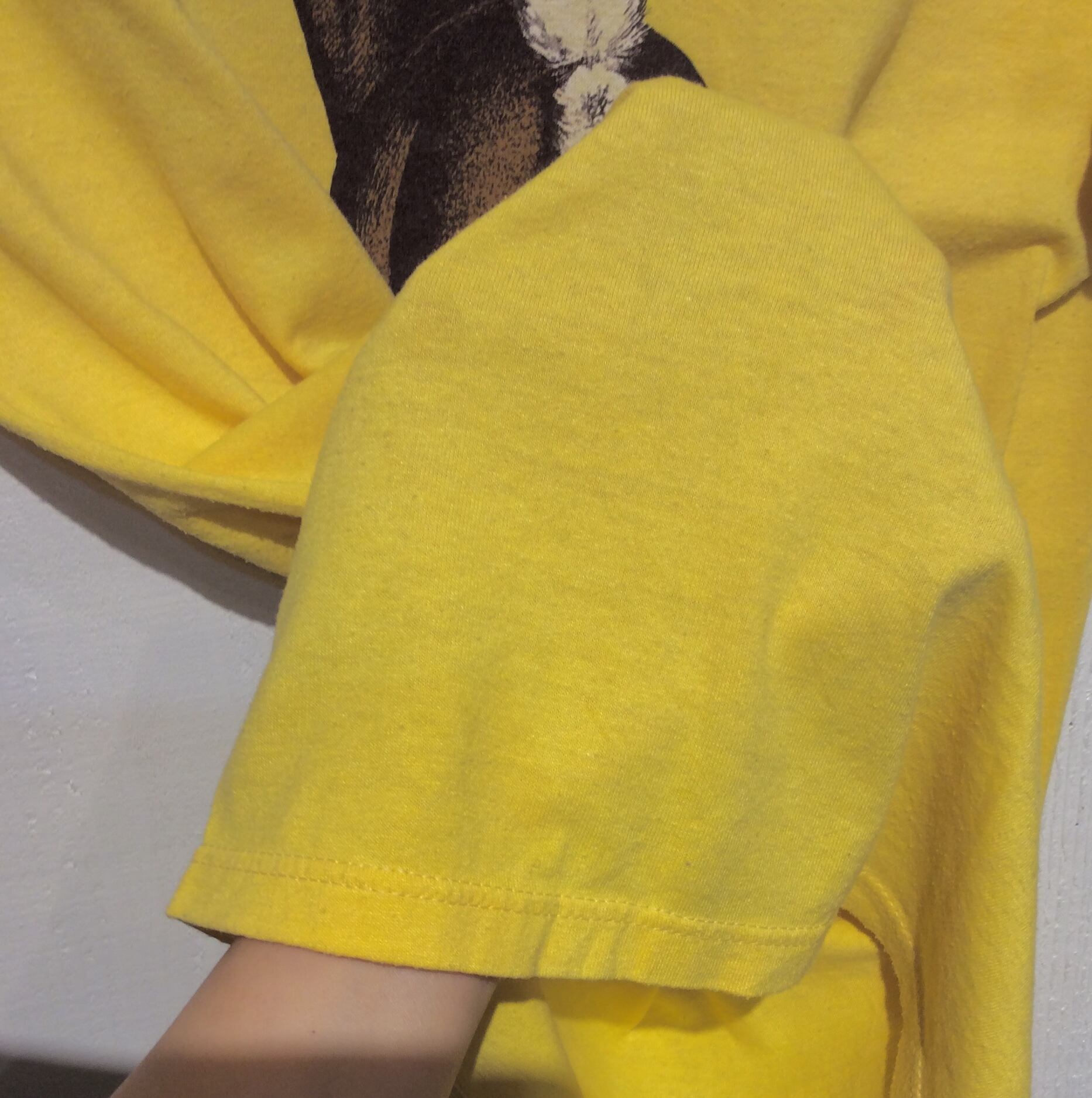 素材は 黄色の コットン50% ポリエステル50%の