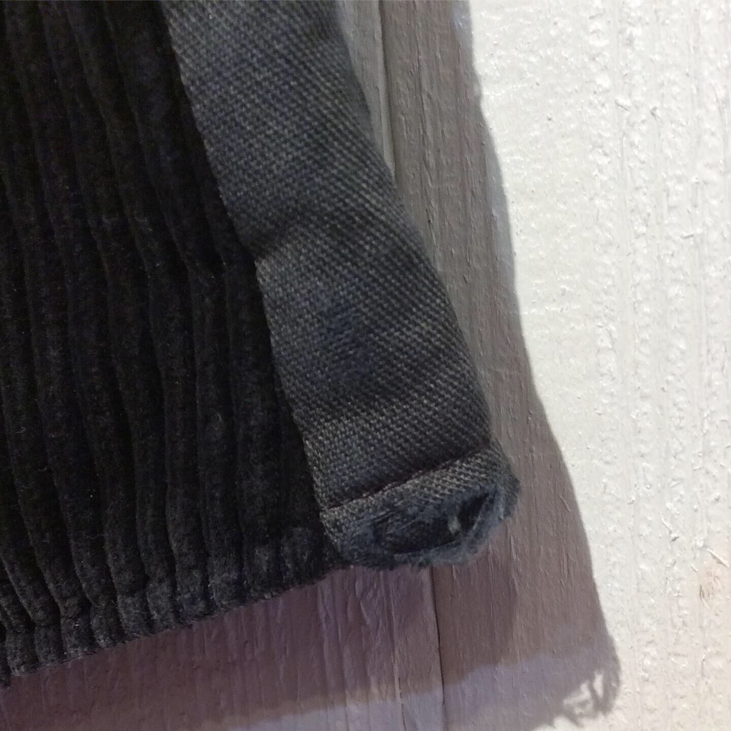 前身頃が黒が少し色あせした太畝コーデュロイ、